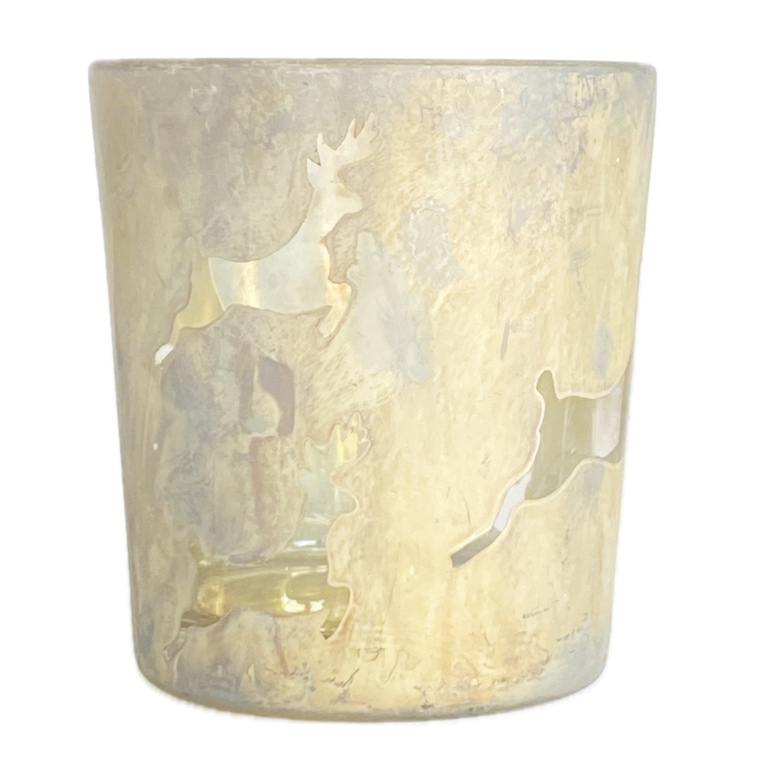 Glass Tealight/Votive Holder with Reindeer Pattern, Antique Frosted Silver Finish