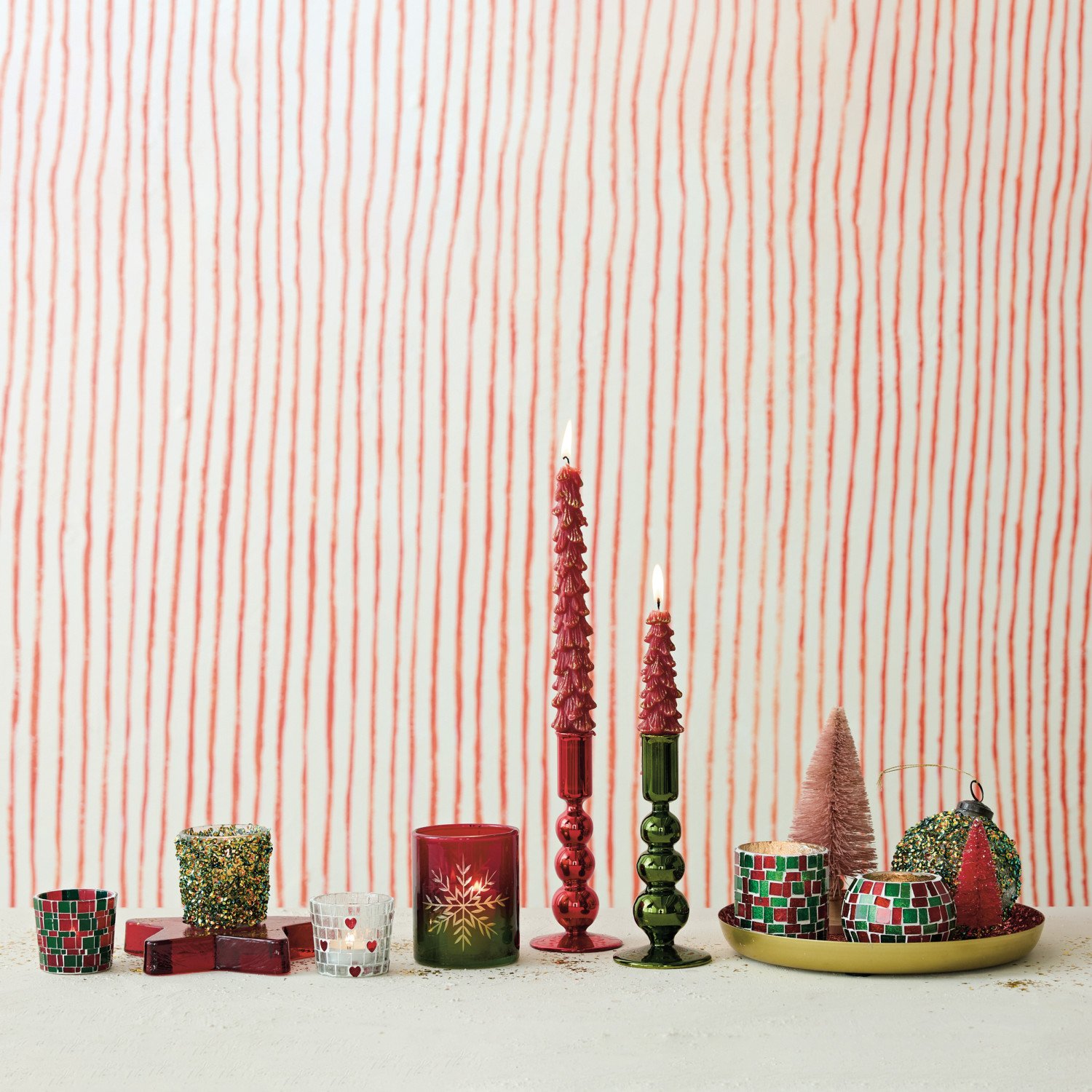 Catalog Name: 2-1/2" Round x 2-1/4"H Recycled Glass Mosaic Tealight/Votive Holder, Red, Green & White