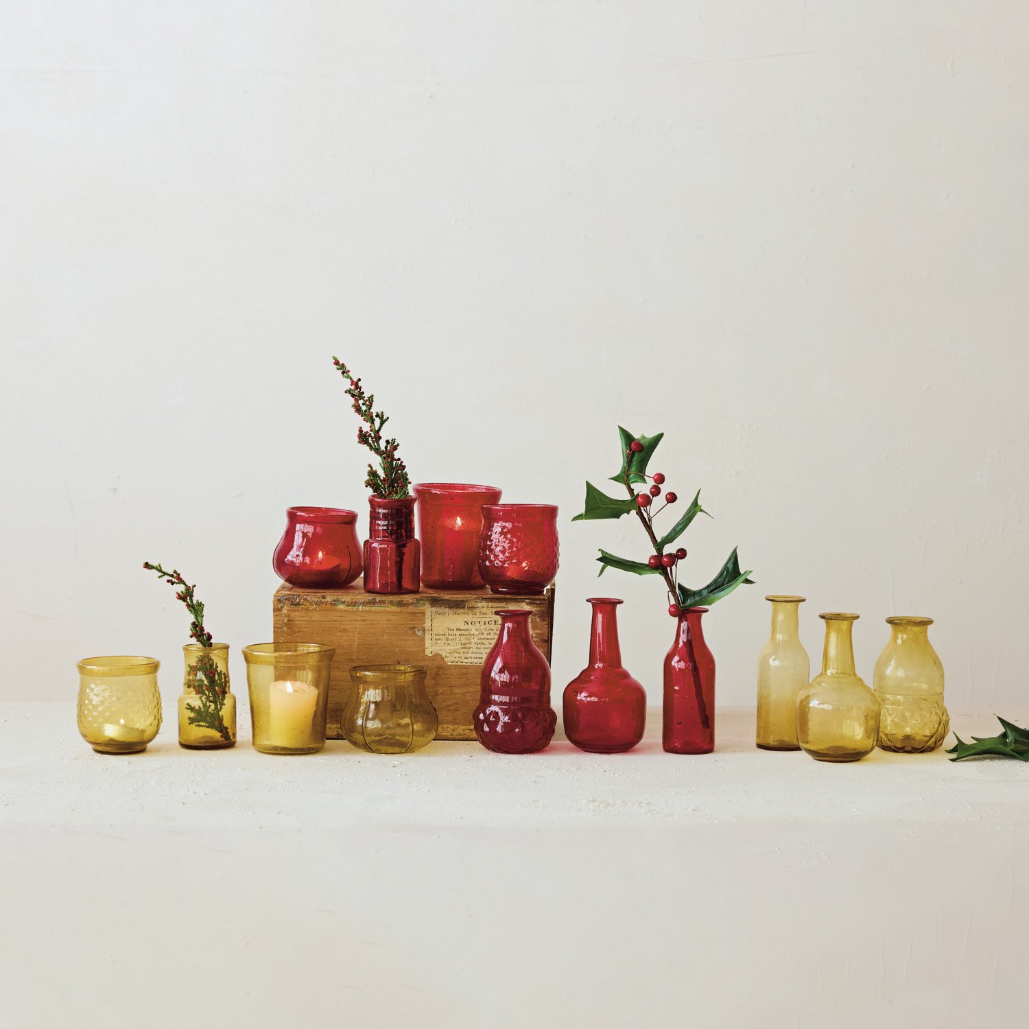 Round Hand-Blown Glass Tealight/Votive Holder, Amber Color, 3 Styles