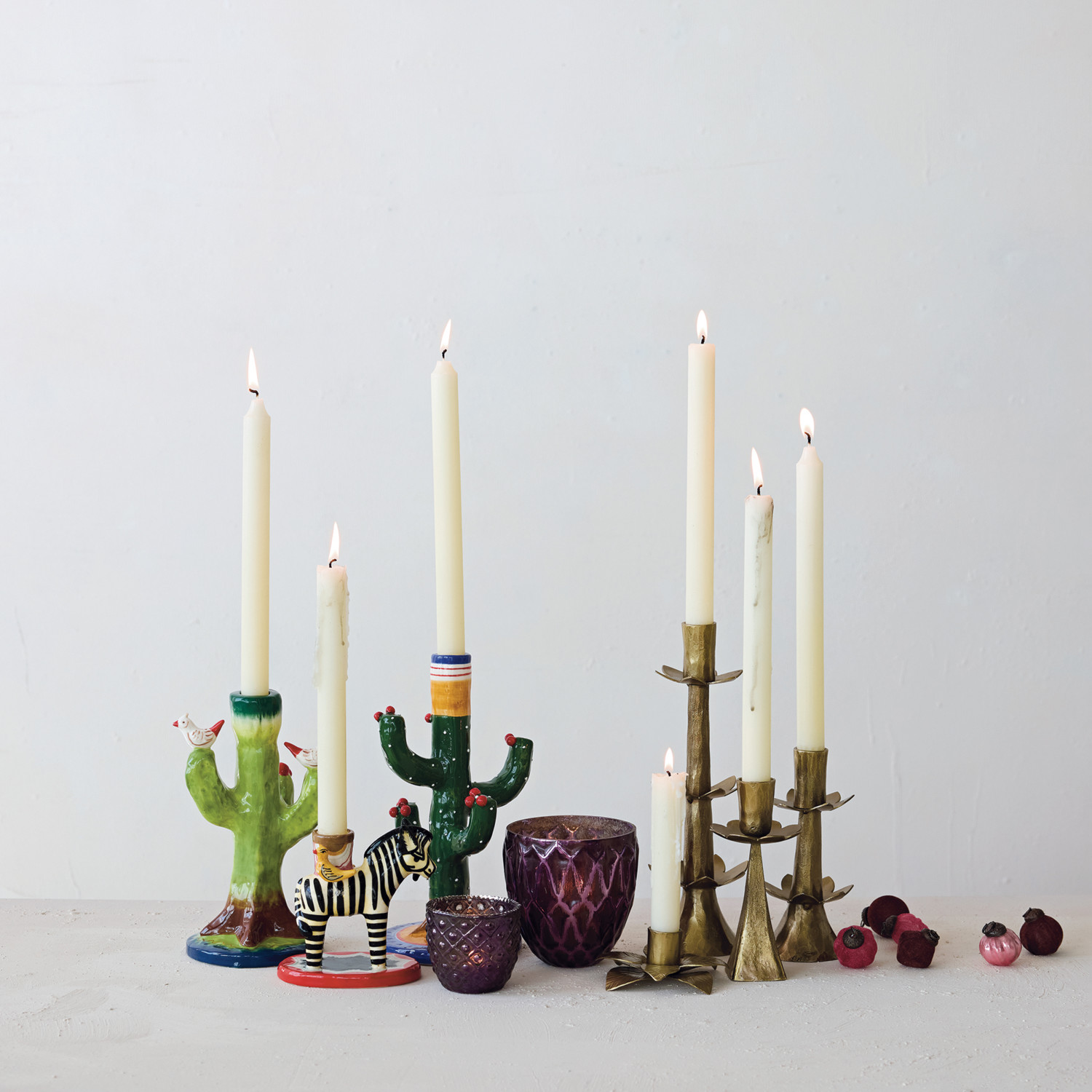 Hand-Painted Ceramic Vintage Reproduction Cactus Shaped Taper Holder with Bird