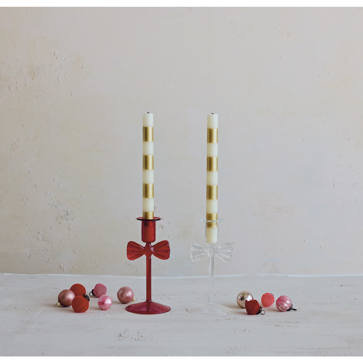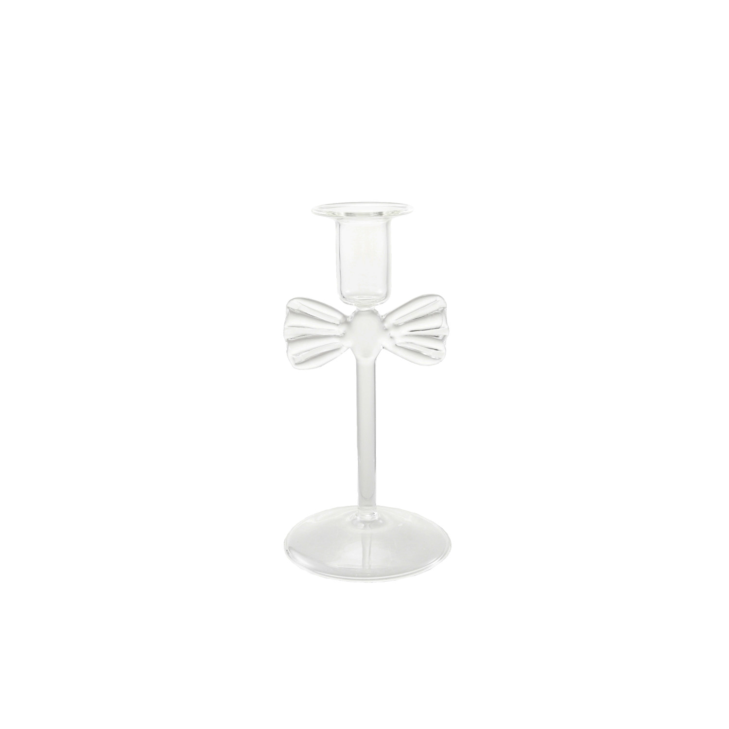 Catalog Name: 3-1/2" Round x 7-1/4"H Glass Taper Holder w/ Bow