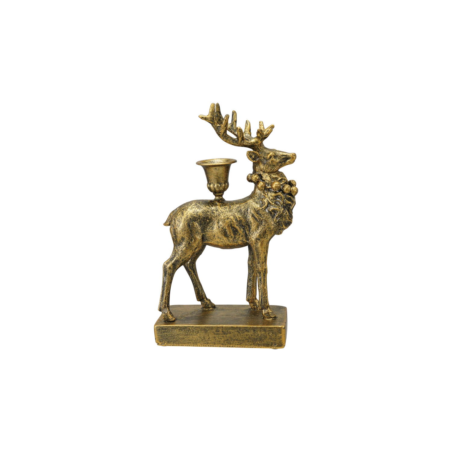 Resin Reindeer Shaped Taper Holder, Antique Gold Finish