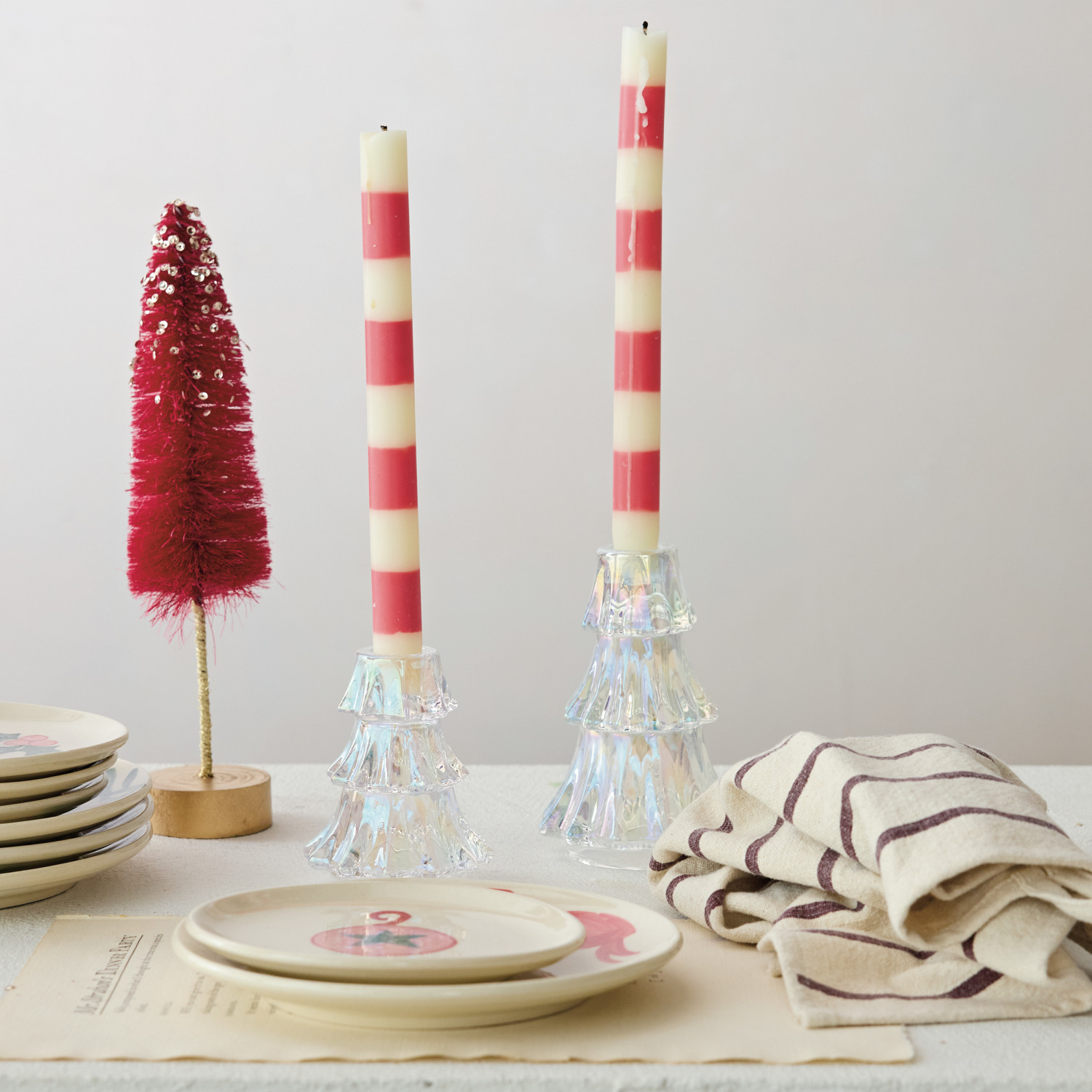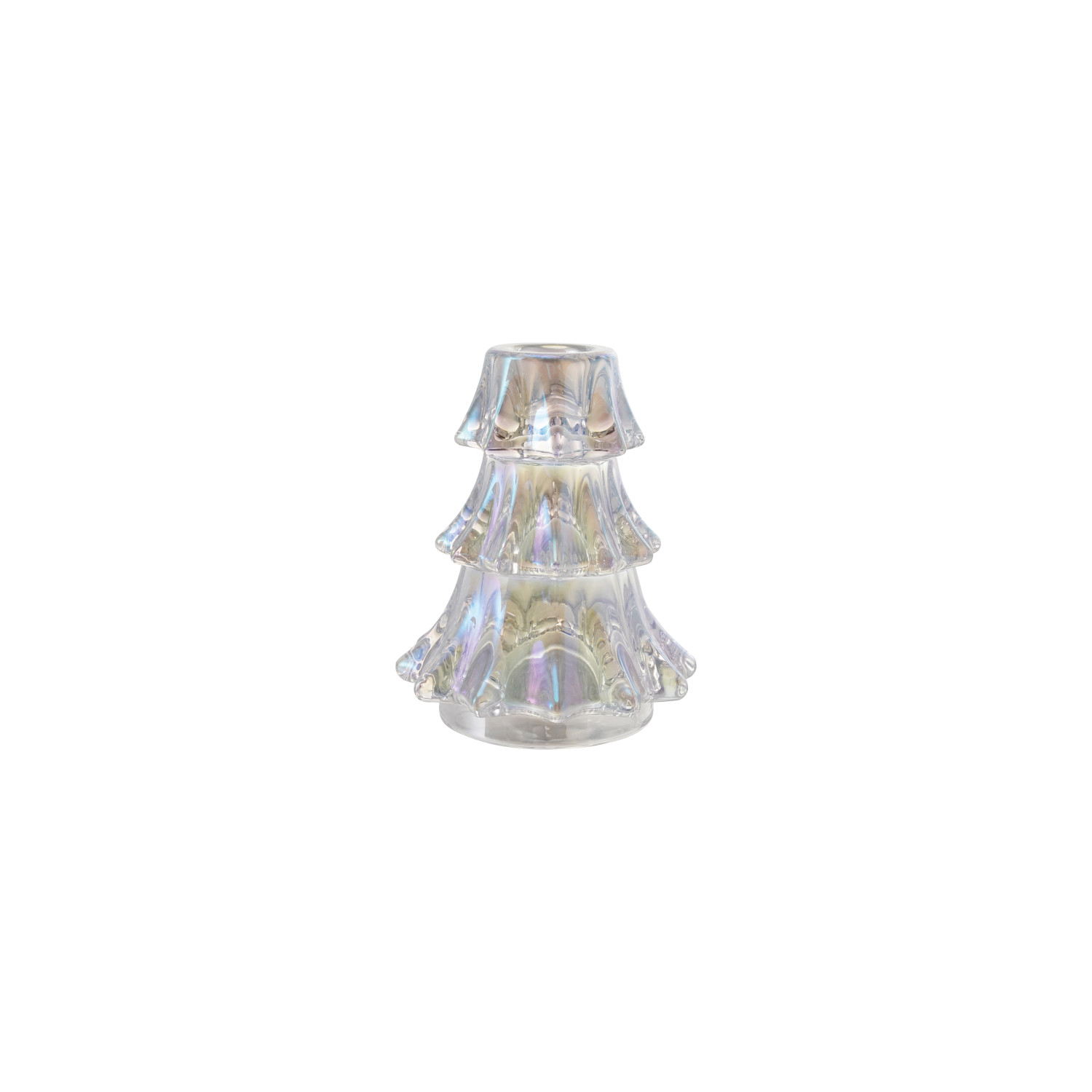 Catalog Name: 3-1/4" Round x 4-1/4"H Glass Tree Shaped Taper Holder, Iridescent Finish