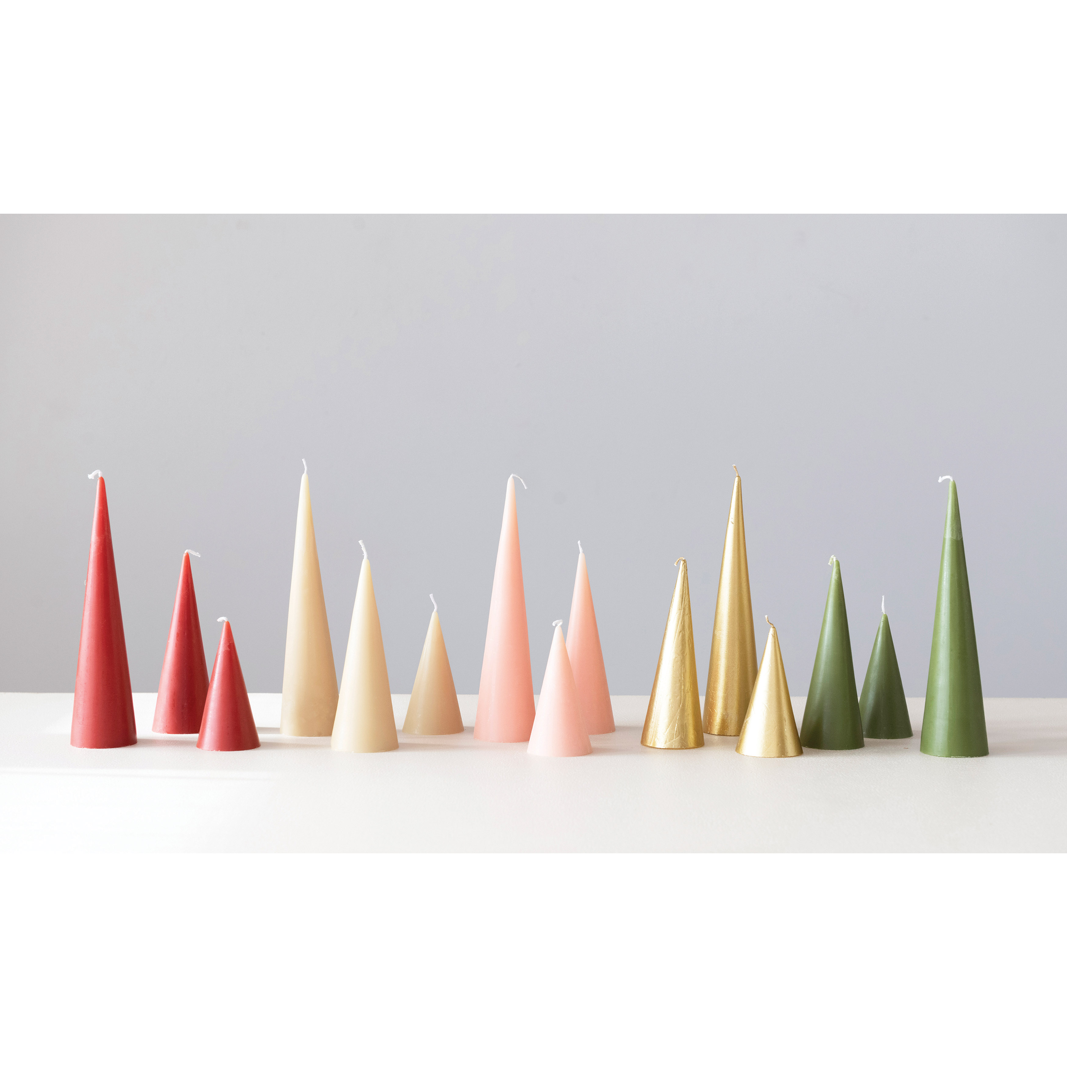 Mix and match the festive hues and sculptural silhouettes of our artfully crafted totems and tapers for a refined candlelight arrangement on a dining table or mantelpiece. Pink color.