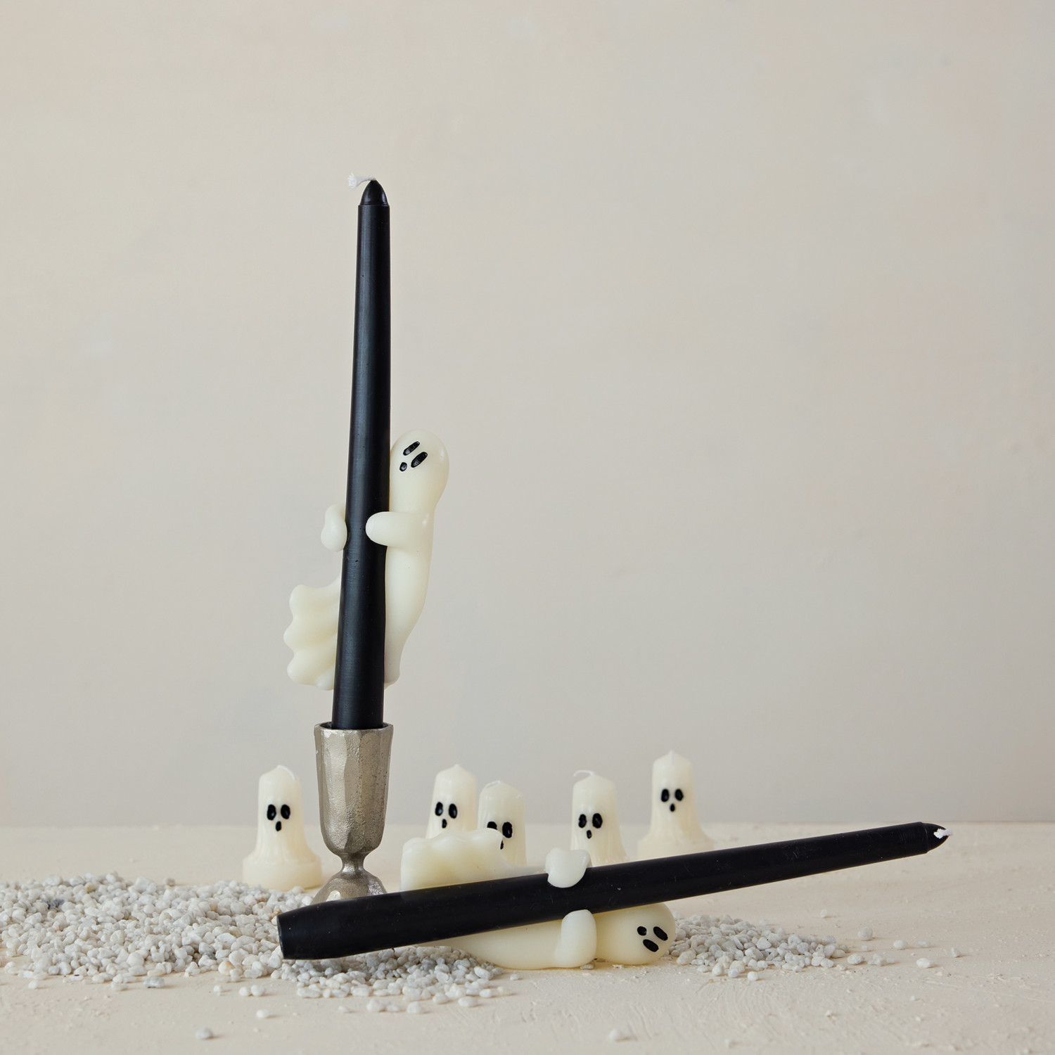 Unscented Taper Candles with Ghost in Box, Black & White, Set of 2 (Est. Burn Time 6 Hours)