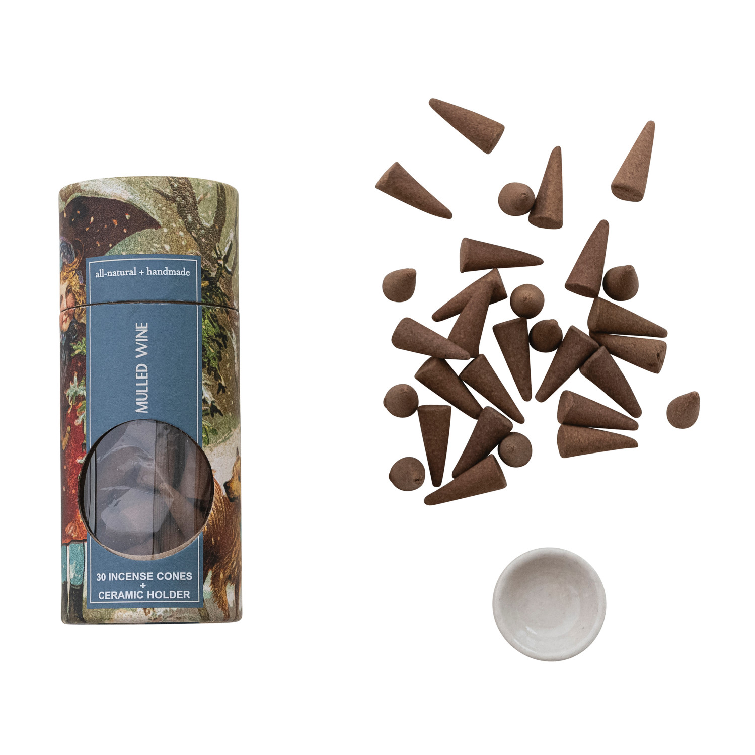 30 Piece All Natural Mulled Wine Scented Incense Cones with Incense Holder, Set of 31