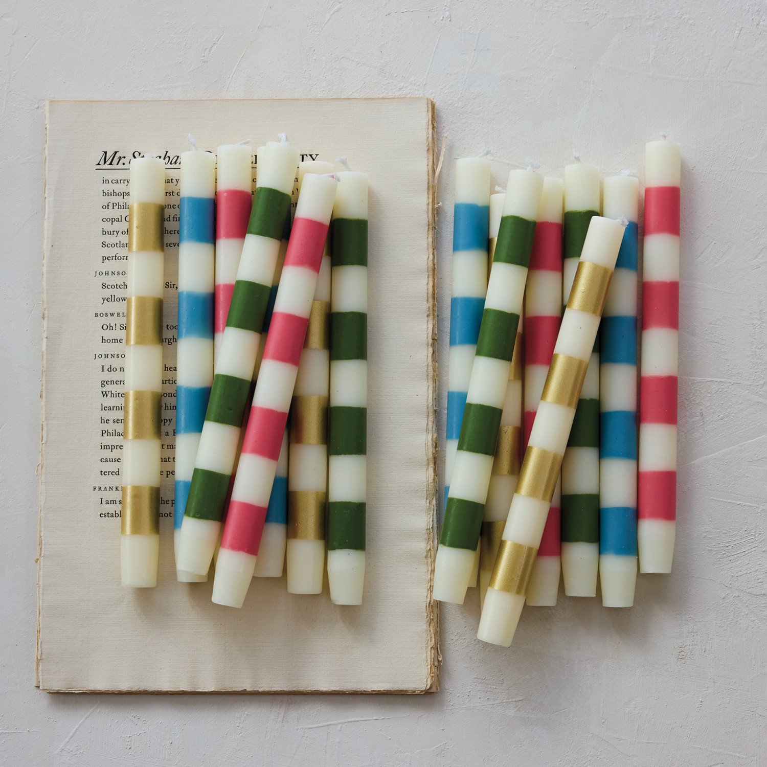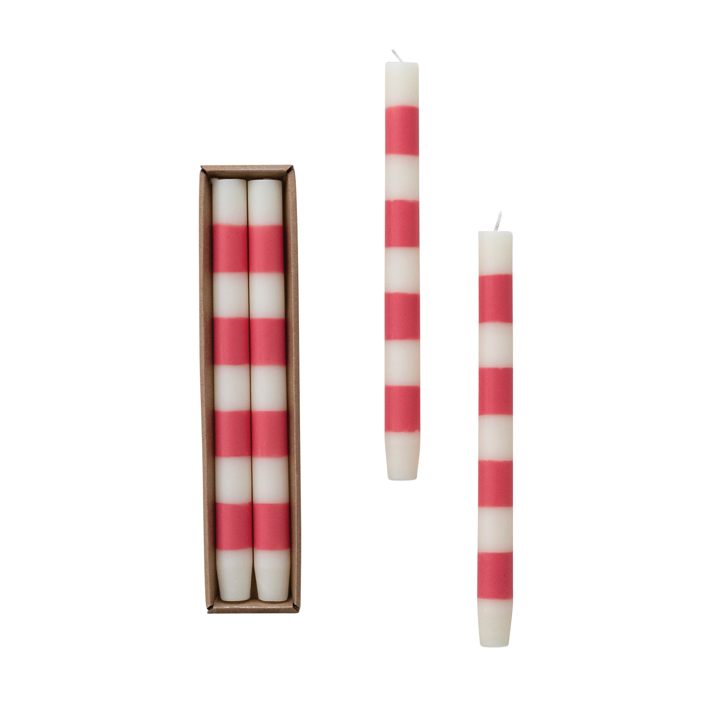 Unscented Taper Candles with Stripes in Box & Pink, Set of 2 (Est. Burn Time 10 Hours)