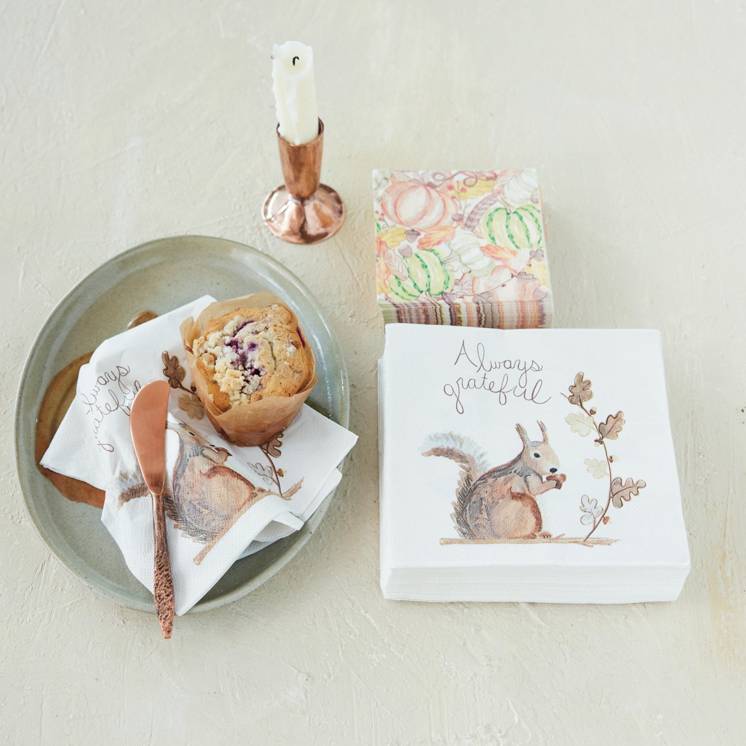 Paper Cocktail Napkins with Pumpkins, Leaves & Acorns (Contains 50 Folded Pieces) ©