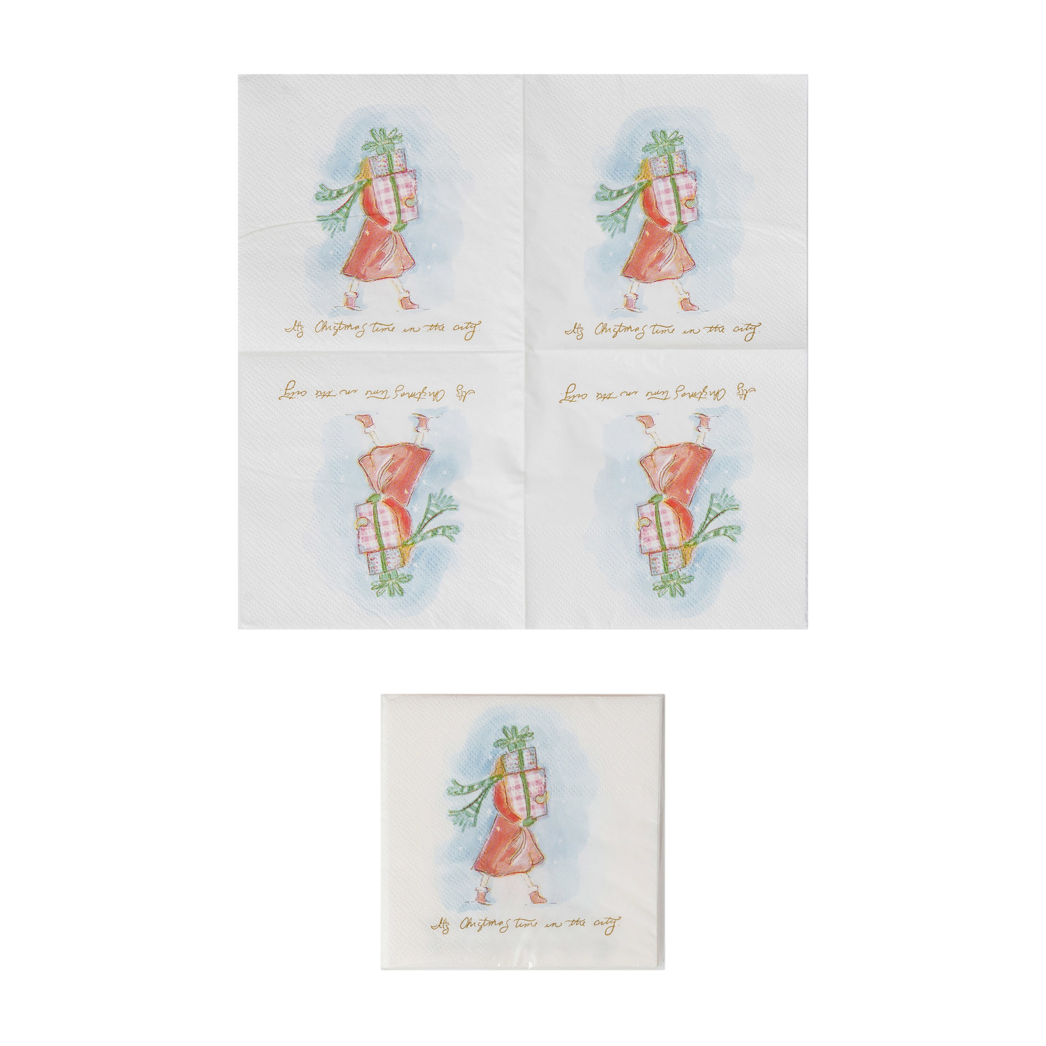Catalog Name: 4" Square Paper Cocktail Napkins w/ Holiday Girl "It's Christmas Time in the City", Multi Color (Contains 50 Folded Pieces) ©