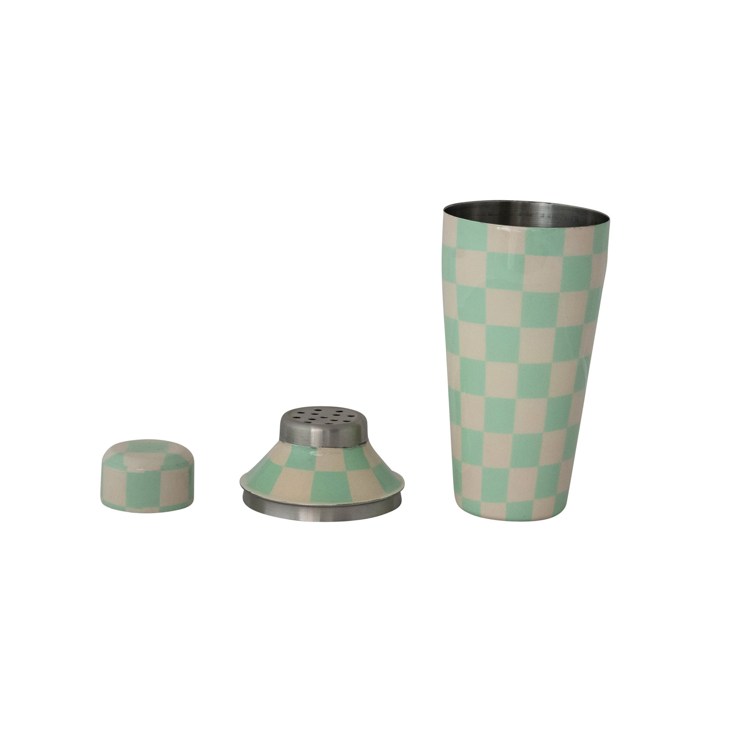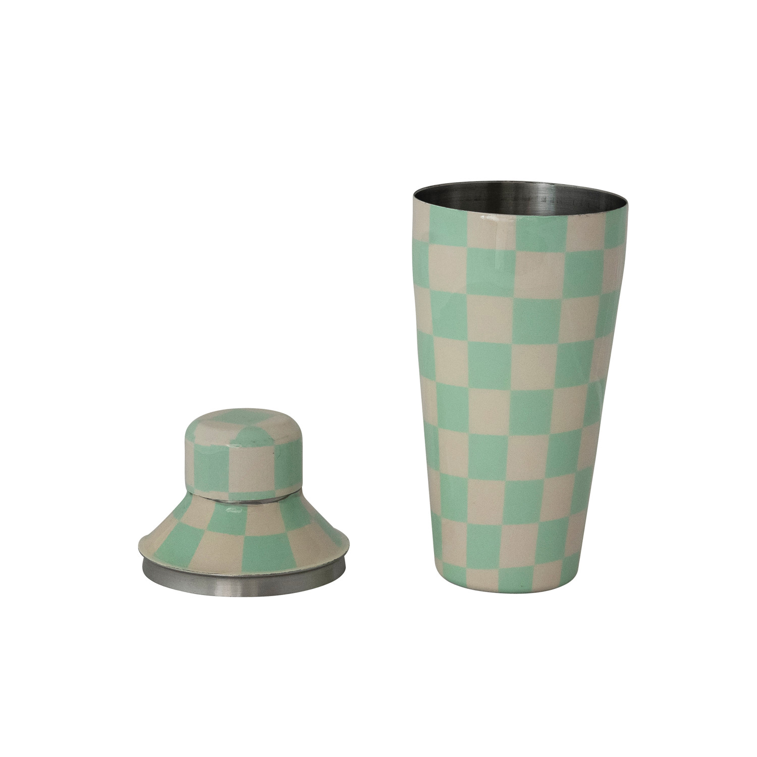 22 oz. Enameled Stainless Steel Cocktail Shaker with Check Pattern, Mint & Ivory Color