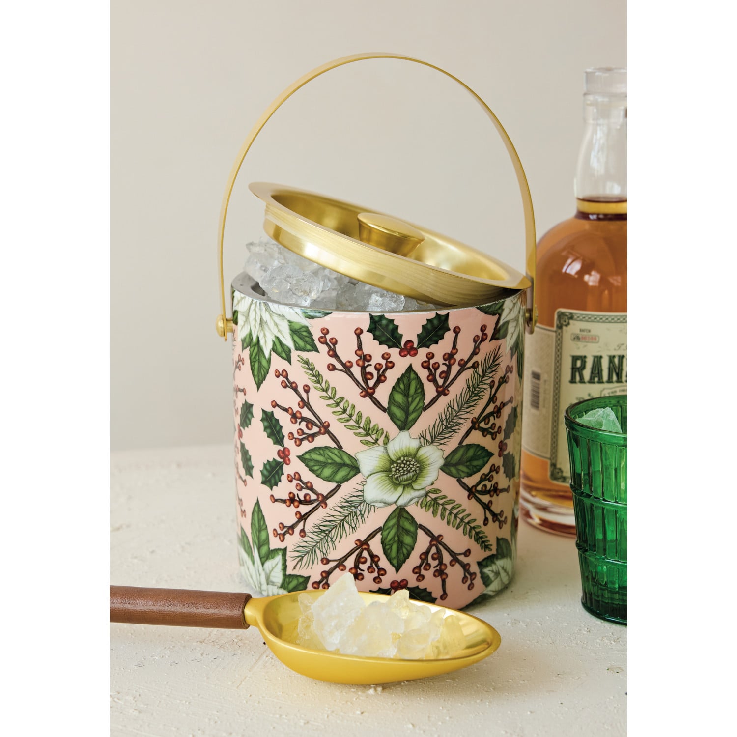 1-1/2 Quart Enameled Stainless Steel Ice Bucket with Seasonal Botanical Pattern ©