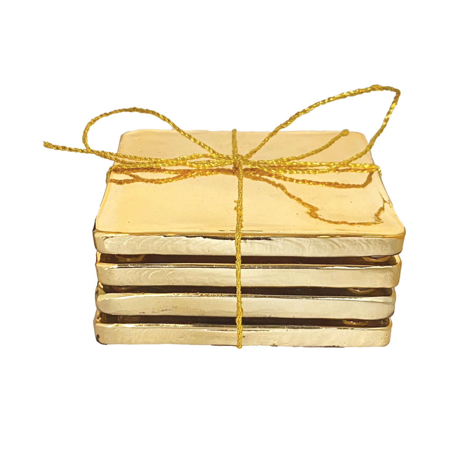 Catalog Name: 4" Square Glass Coasters, Gold Finish, Set of 4 Tied w/ Gold Cord