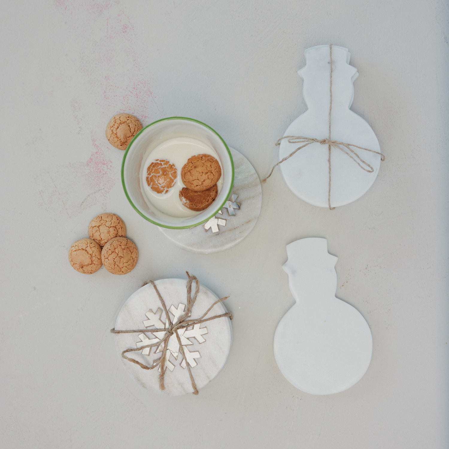 Marble Snowman Shaped Coasters, White, Set of 4 Tied with Jute