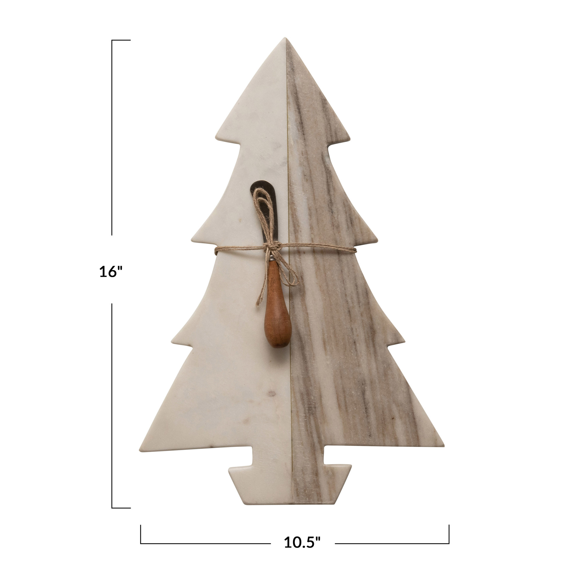 Catalog Name: 16"L x 10-1/2"W Marble Tree Shaped Cheese/Cutting Board w/ Wood Canape Knife, White, Buff Color & Natural, Set of 2