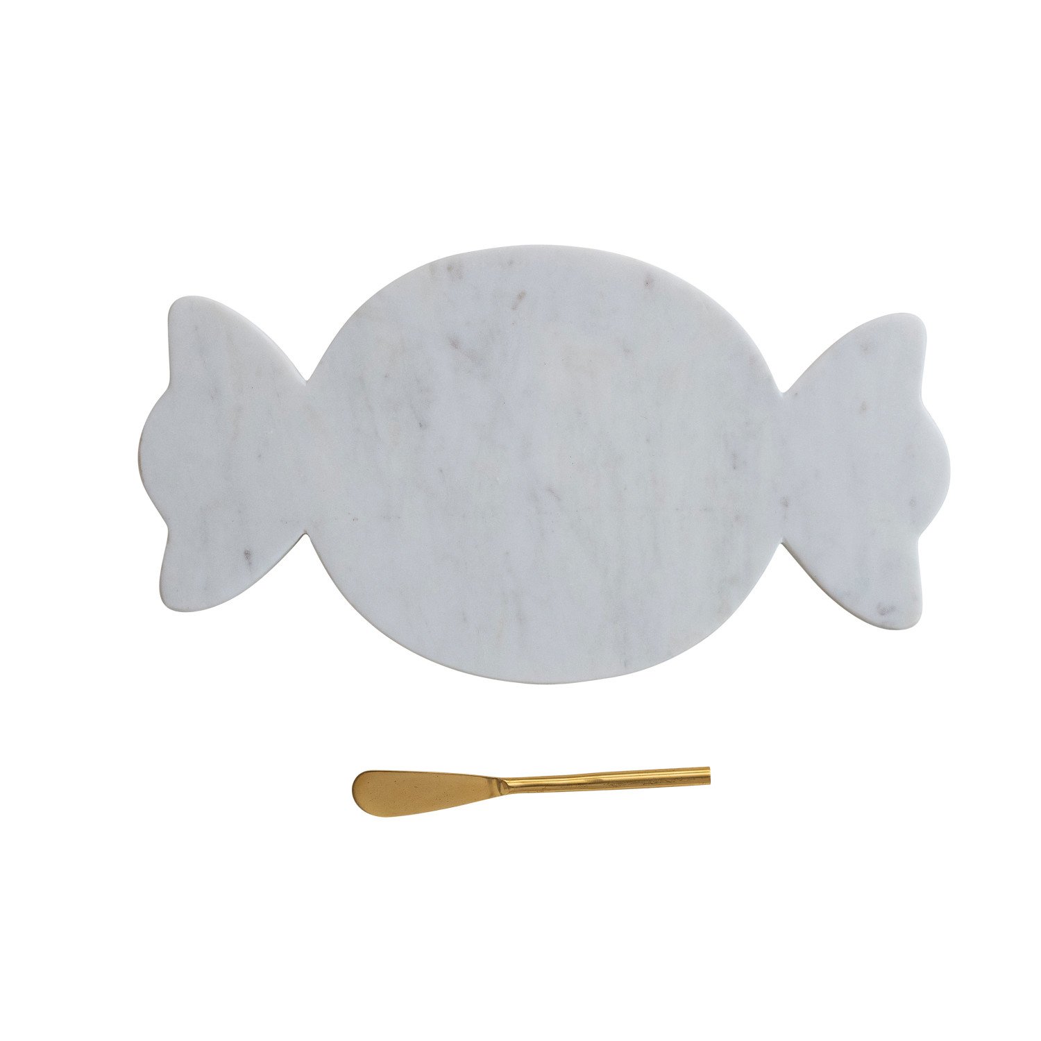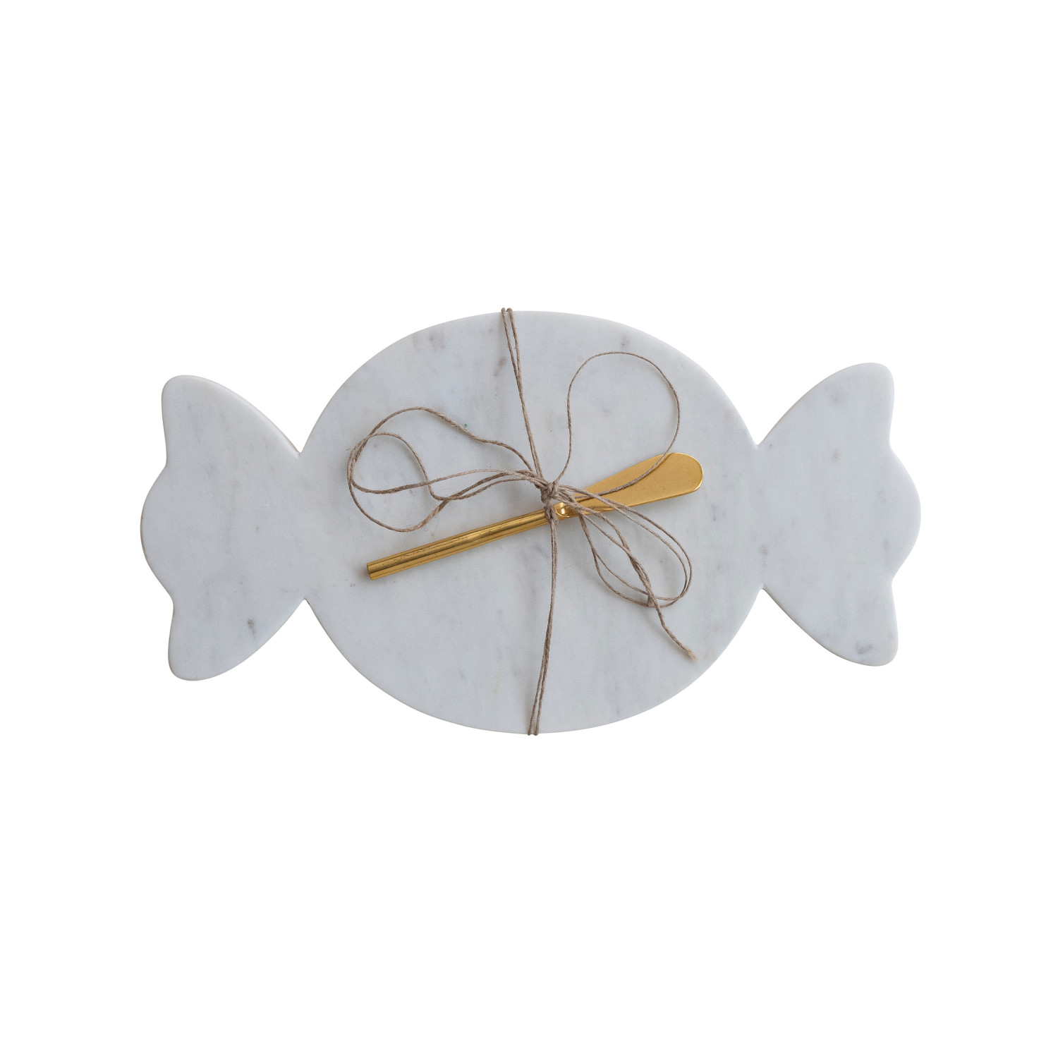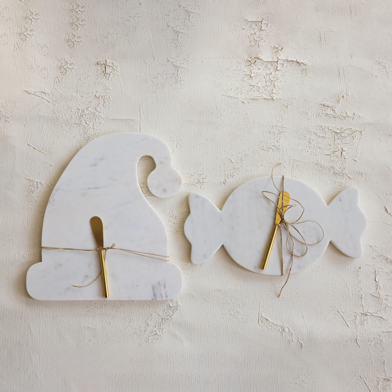 Marble Candy Shaped Cheese/Serving Board with Canape Knife, Set of 2 Tied with Jute