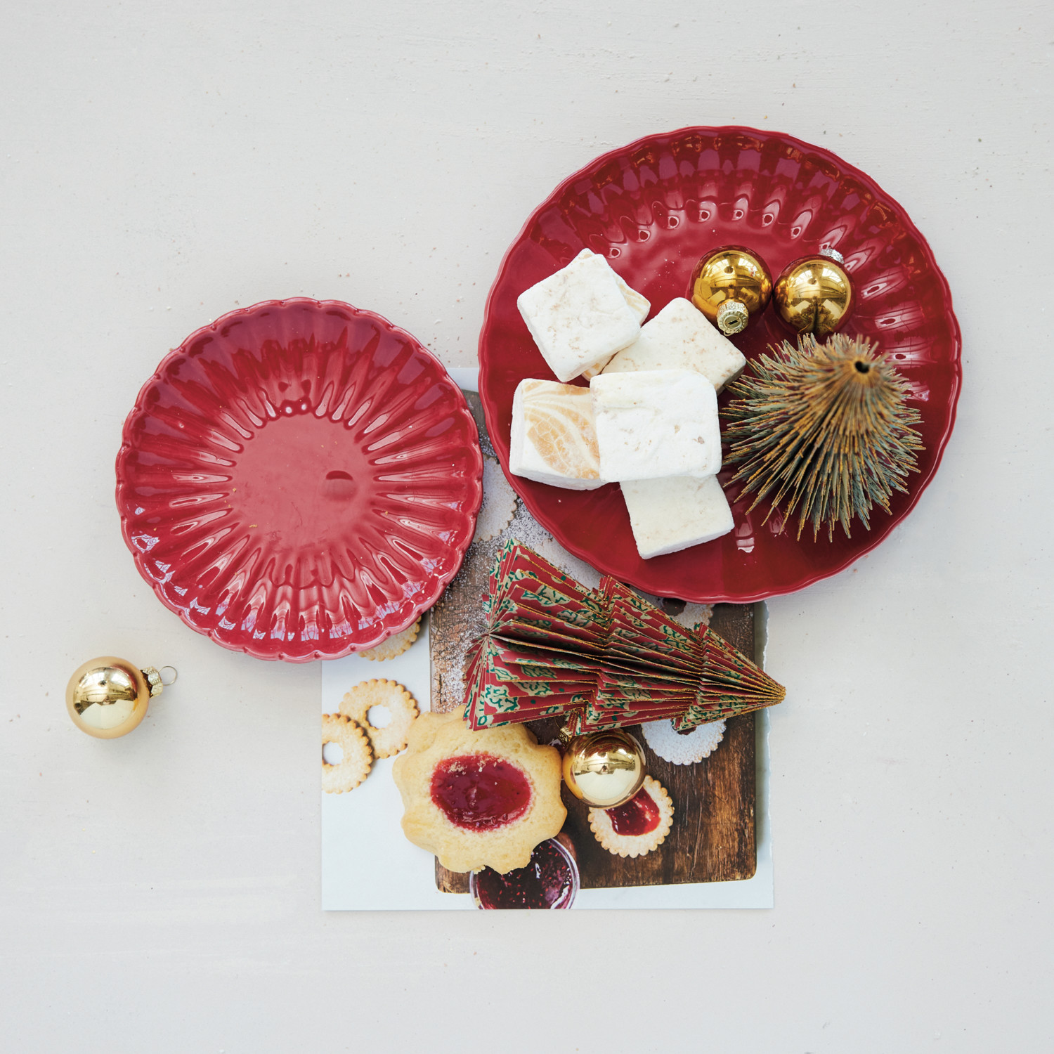 Stoneware Fluted Plate, Red (Each One Will Vary)