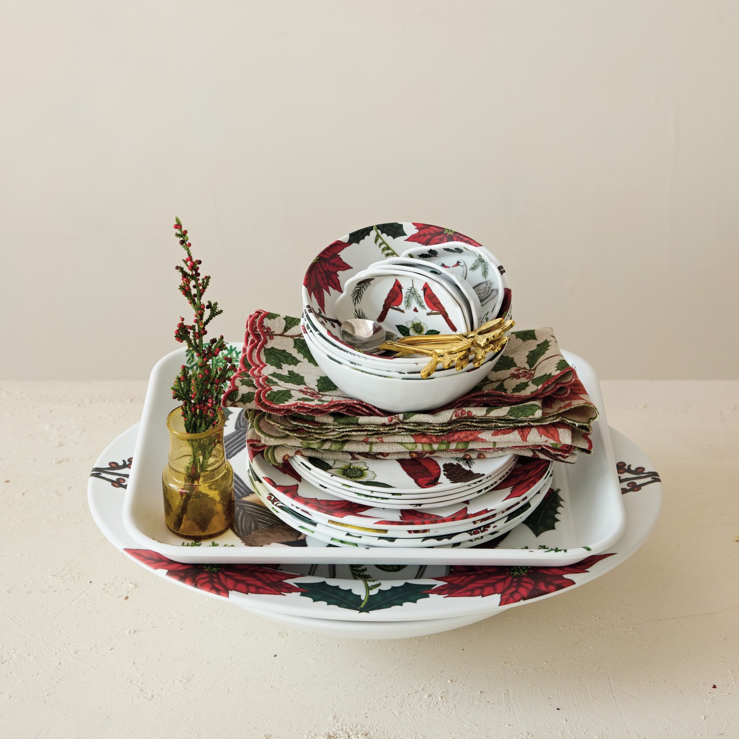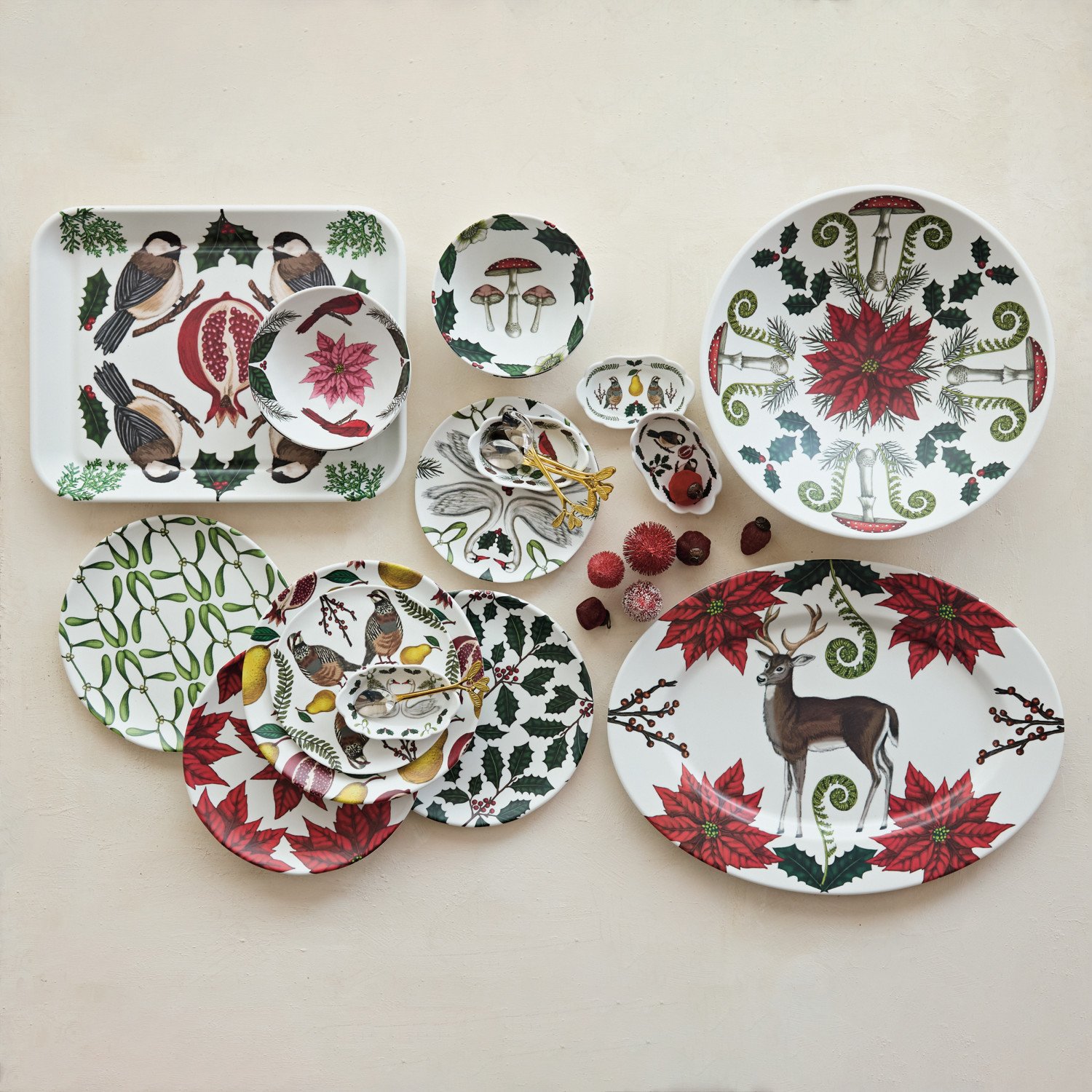 Melamine Plate with Seasonal Botanical Pattern, Matte Finish, 4 Styles ©