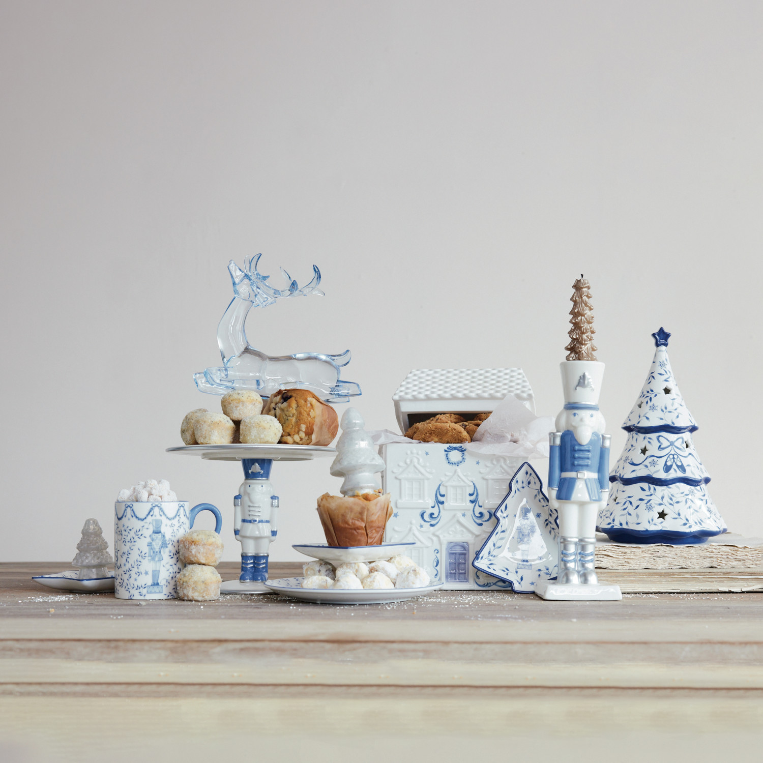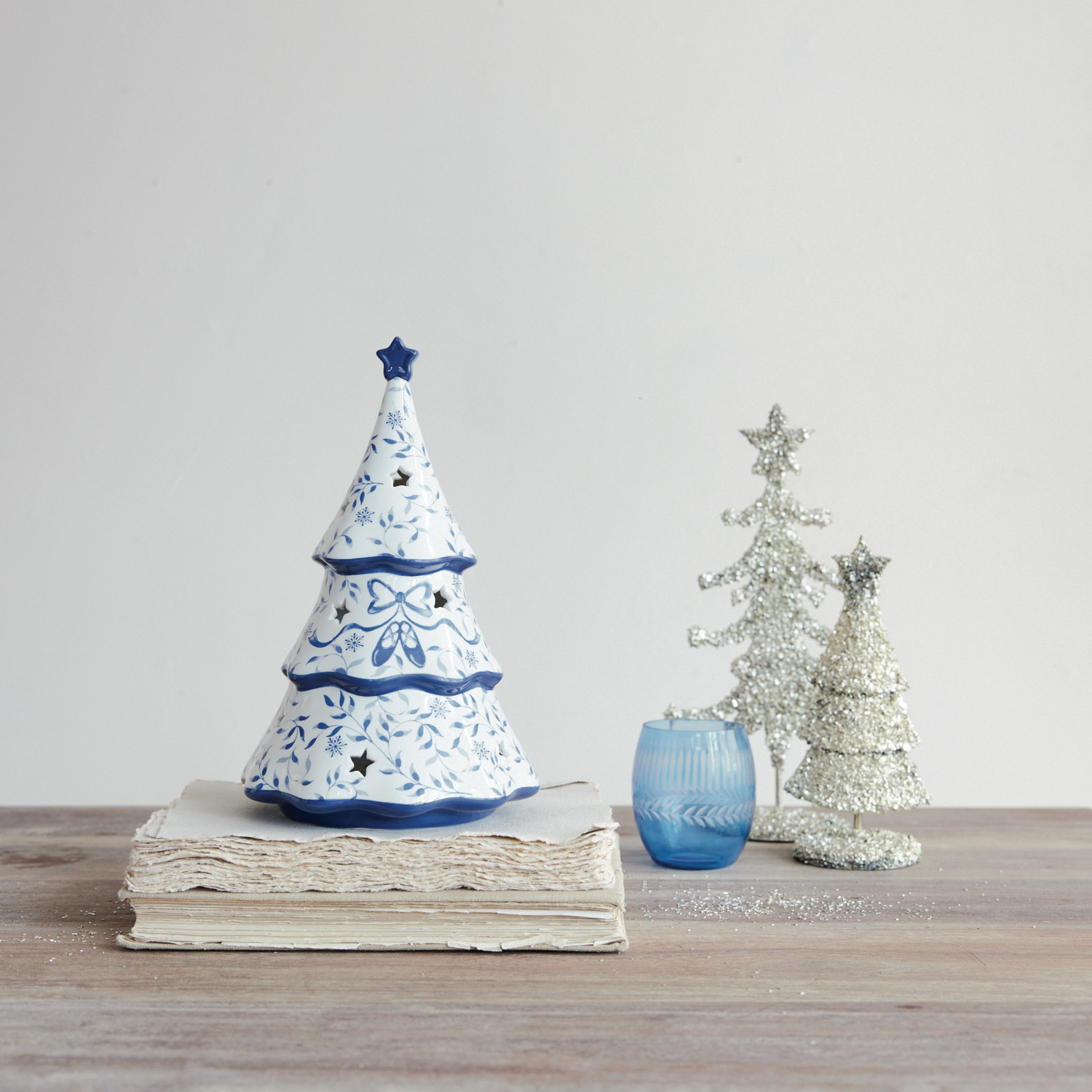Stoneware Plate with Tree, White & Blue