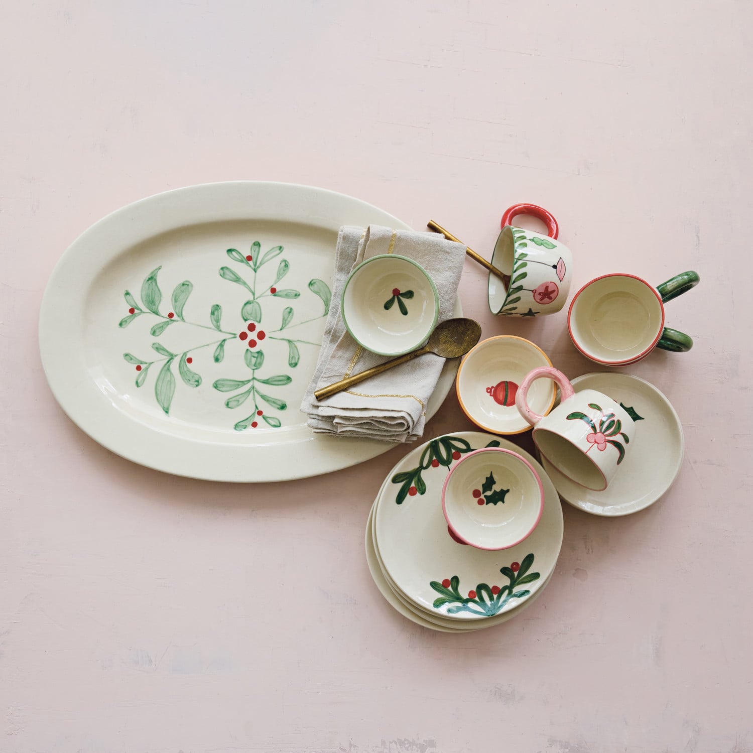 Hand-Painted Stoneware Plate with Holiday Botanicals/Word, 4 Styles (Each One Will Vary)