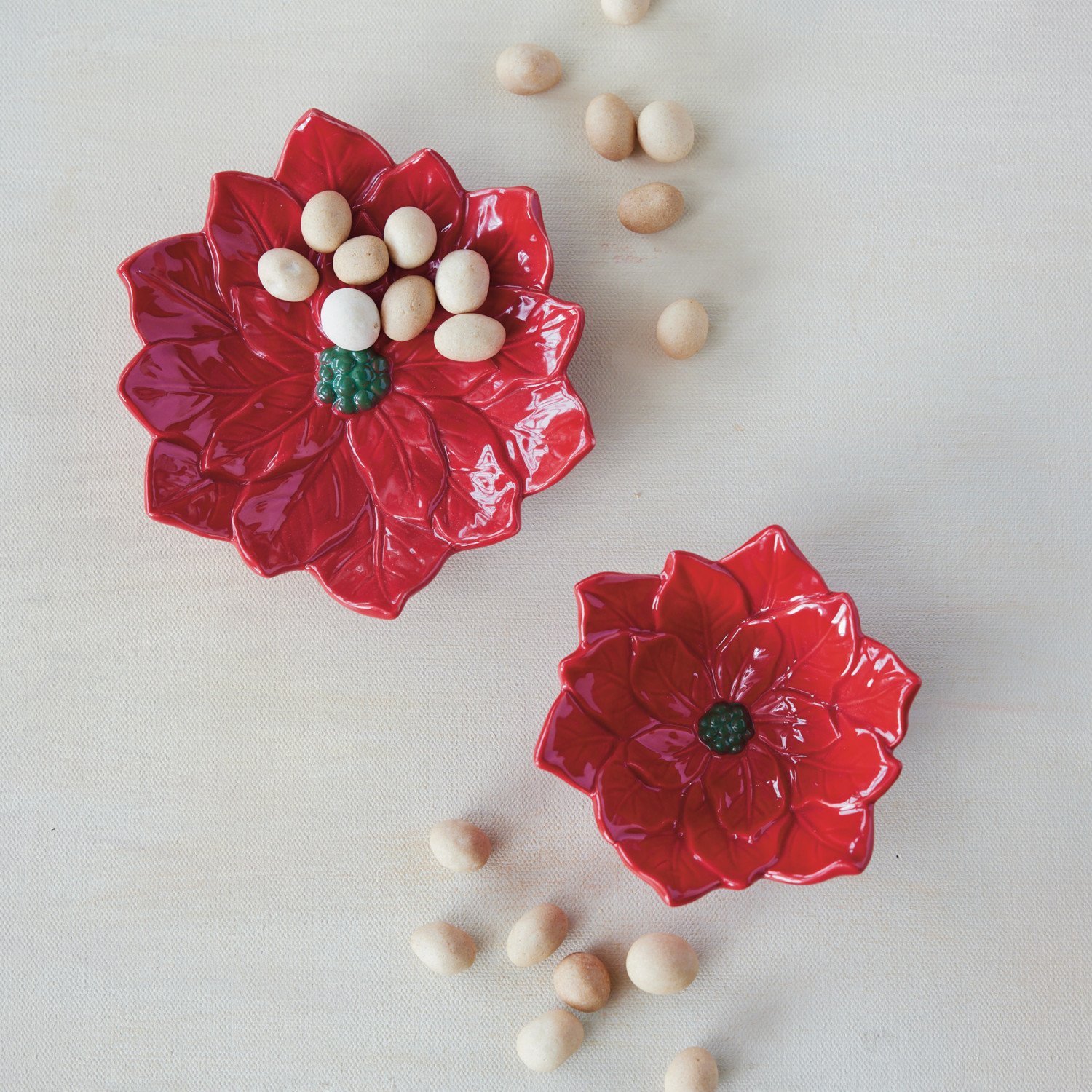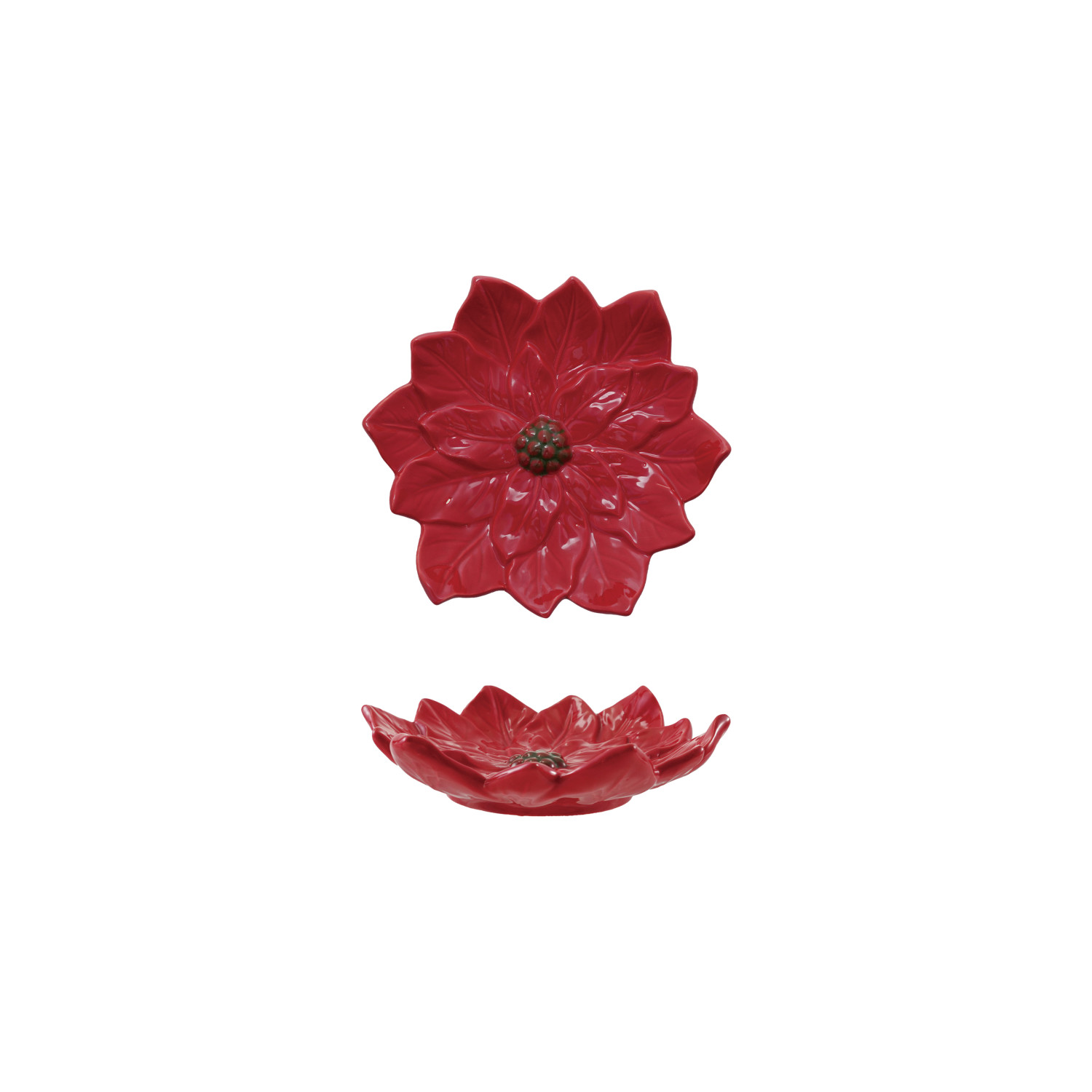 Hand-Painted Ceramic Poinsettia Shaped Plate, Red & Green
