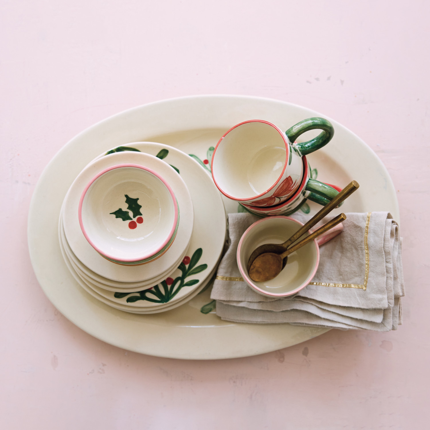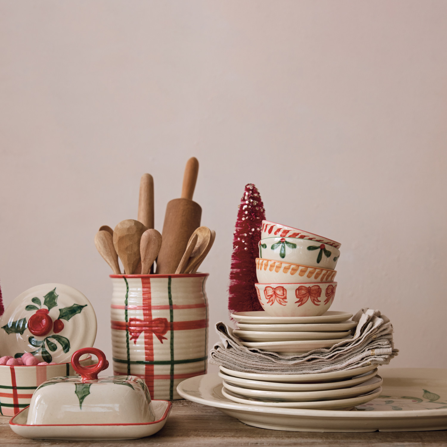 Hand-Painted Stoneware Plate with Holiday Image, 4 Styles (Each One Will Vary)