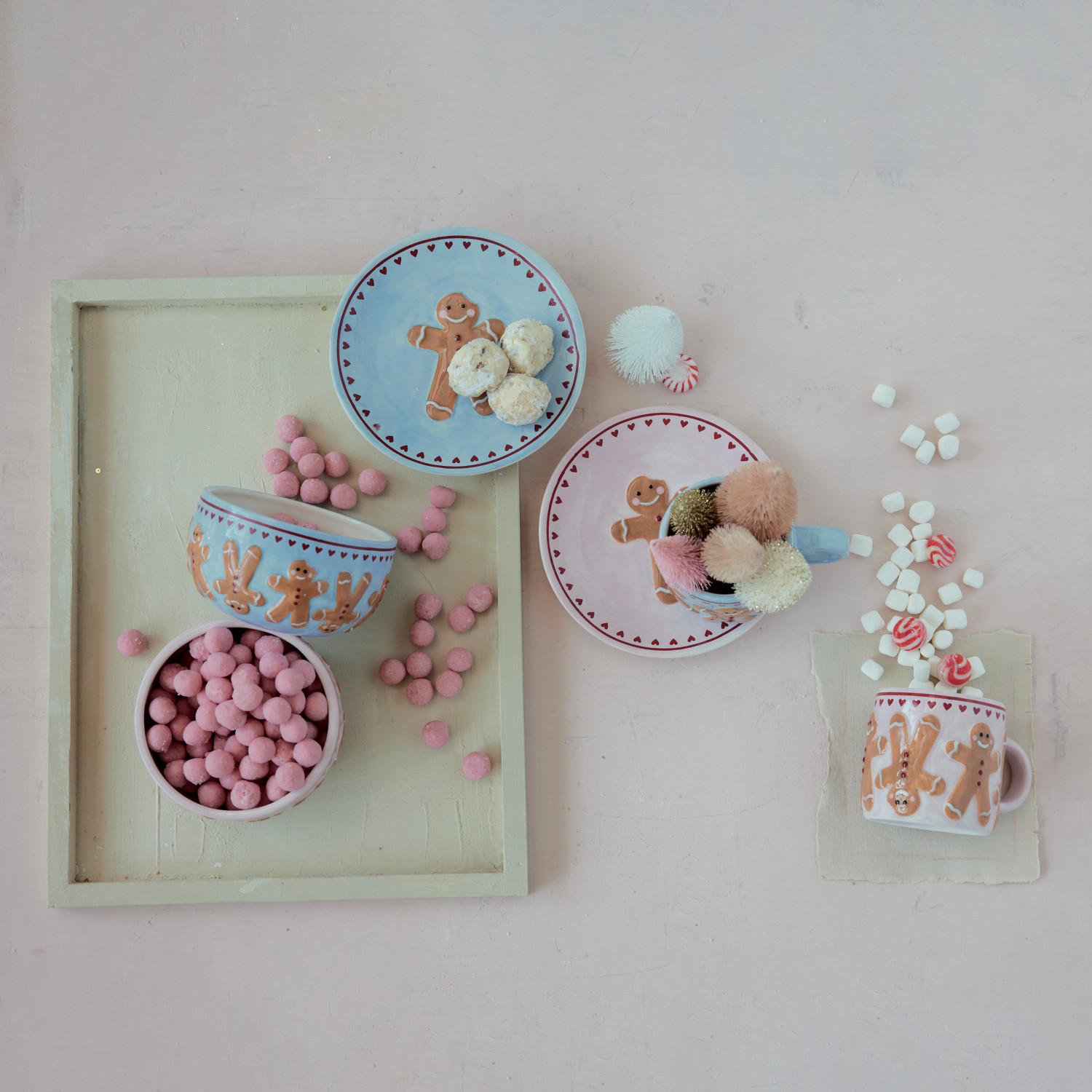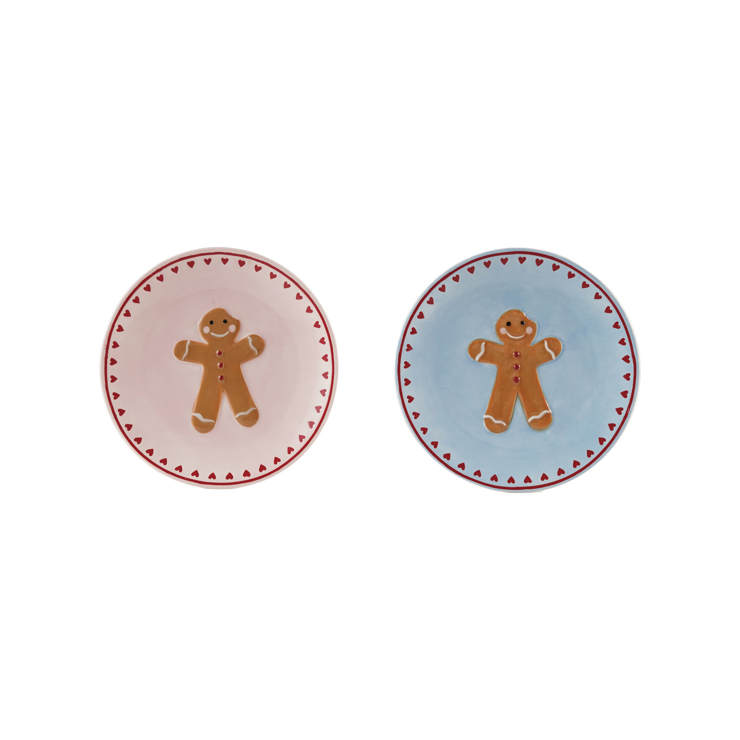 Hand-Painted Stoneware Plate with Wax Relief Gingerbread & Hearts, 2 Colors