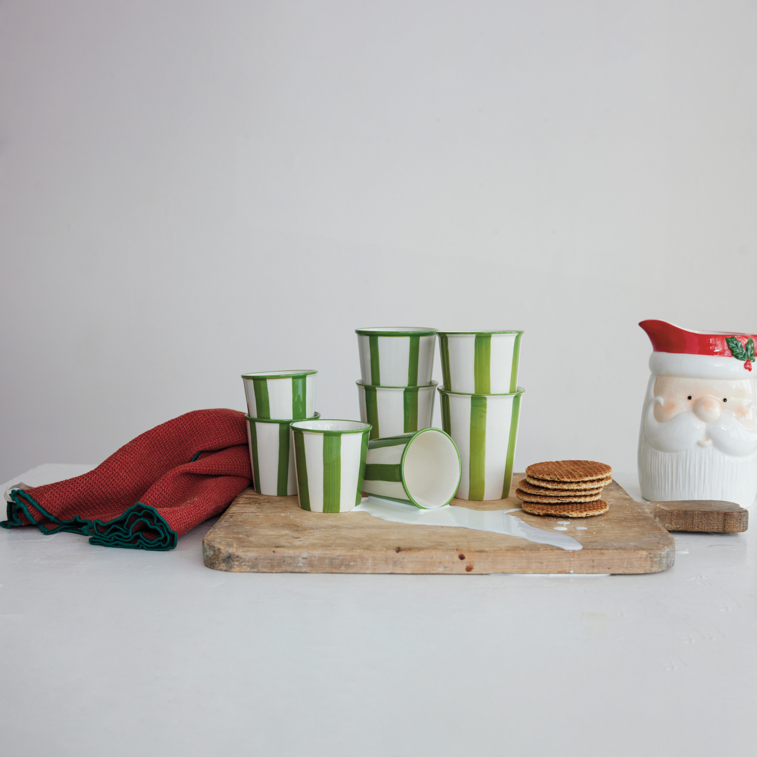 6 oz. Hand-Painted Stoneware Striped Cup, Green & White