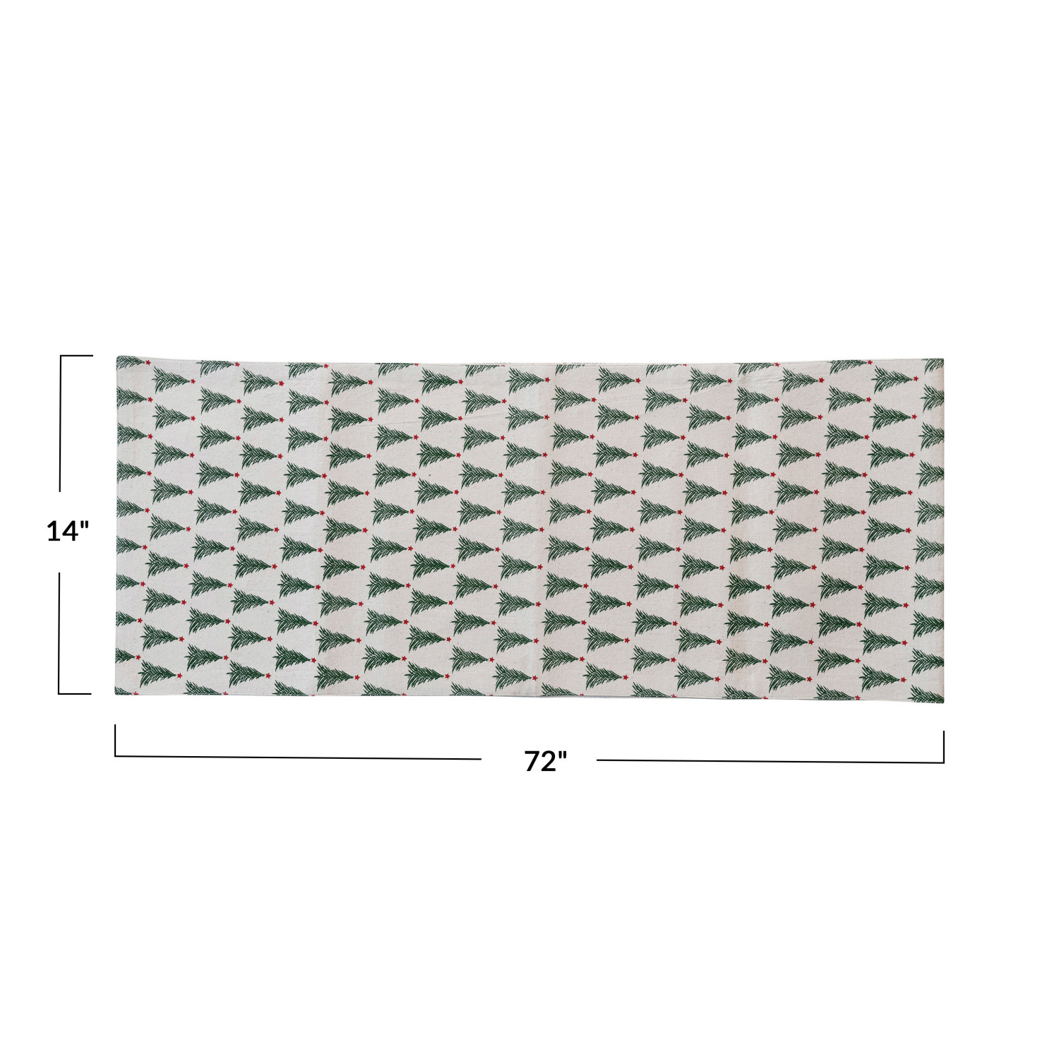 Catalog Name: 72"L x 14"W Stonewashed Cotton Printed Table Runner w/ Christmas Tree Pattern, Natural, Green & Red