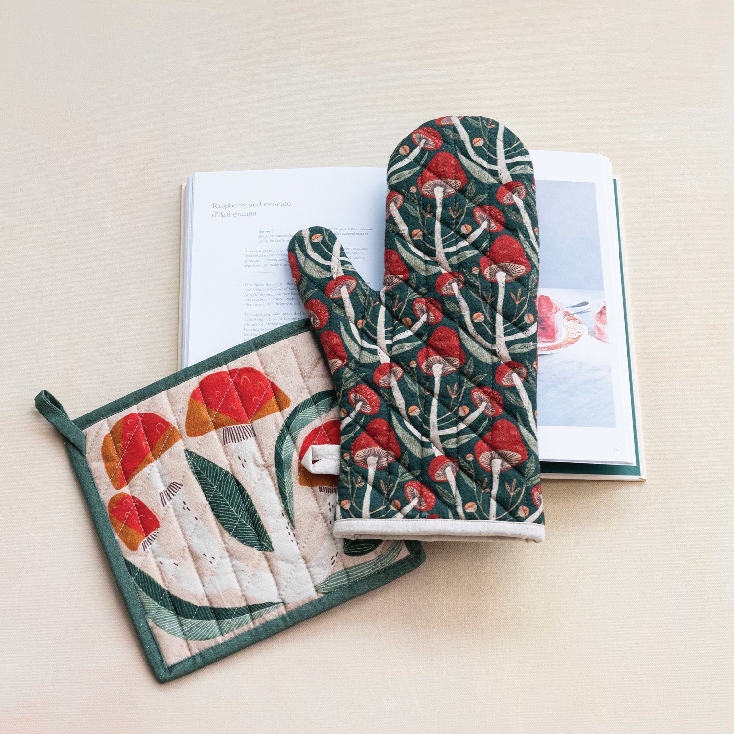 Add a dash of woodland charm to the kitchen accessories with this enchanting, quilted pot holder. The vibrant mushroom print set against a multicolor background evokes the magic of a forest floor, while the 8-inch square design provides practical coverage for busy cooks. Crafted from soft, durable cotton, it's designed to withstand the rigors of daily use while bringing a smile to every face. It measures 8 in width and 8 in length, offering ample space to protect hands from heat. Whether one is a gourmet chef or simply loves to infuse the home with whimsical details, this pot holder is sure to become a cherished part of every kitchen collection. A charming, quilted pot holder adorned with whimsical mushrooms, bringing a touch of the enchanted forest to the kitchen. A perfect accent for the nature-inspired kitchen, this pot holder blends functionality with a fairy-tale aesthetic. This pot holder is designed for safe handling of hot cookware, adding both protection and style to culinary endeavors.