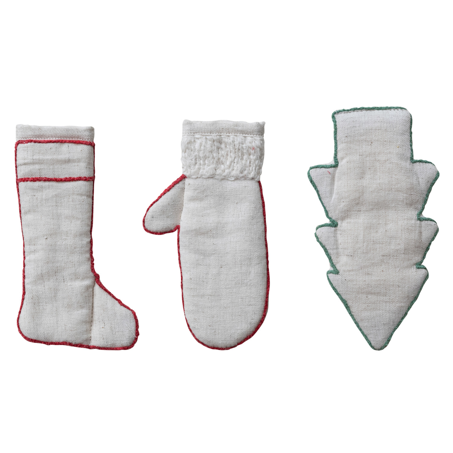 Catalog Name: 5"L x 4"W Woven & Linen Stocking/Mitten/Tree Shaped Pot Handle Cover w/ Embroidery, 3 Styles