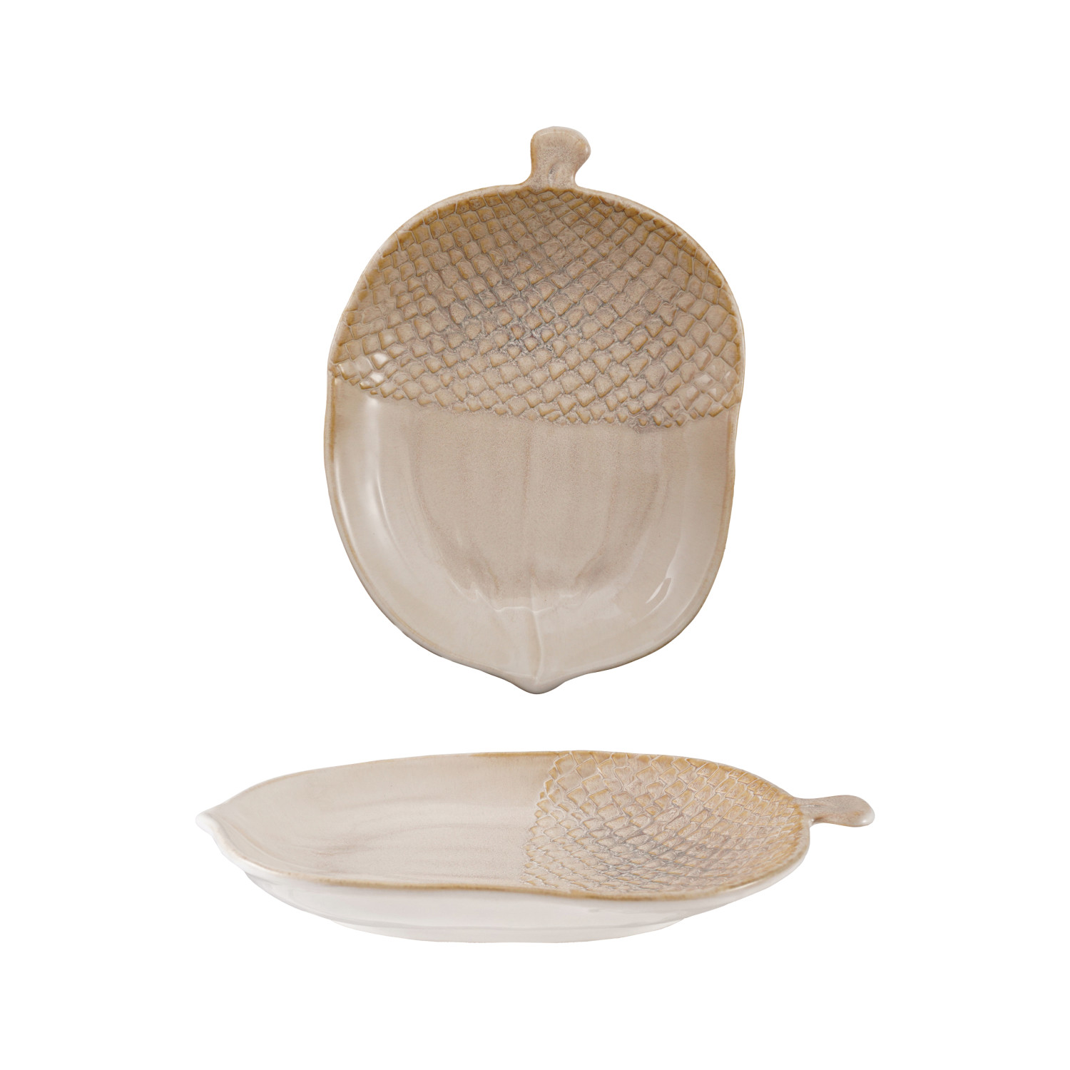 Catalog Name: 12-3/4"L x 9-1/2"W Stoneware Acorn Shaped Platter, Reactive Glaze, Cream Color (Each One Will Vary)