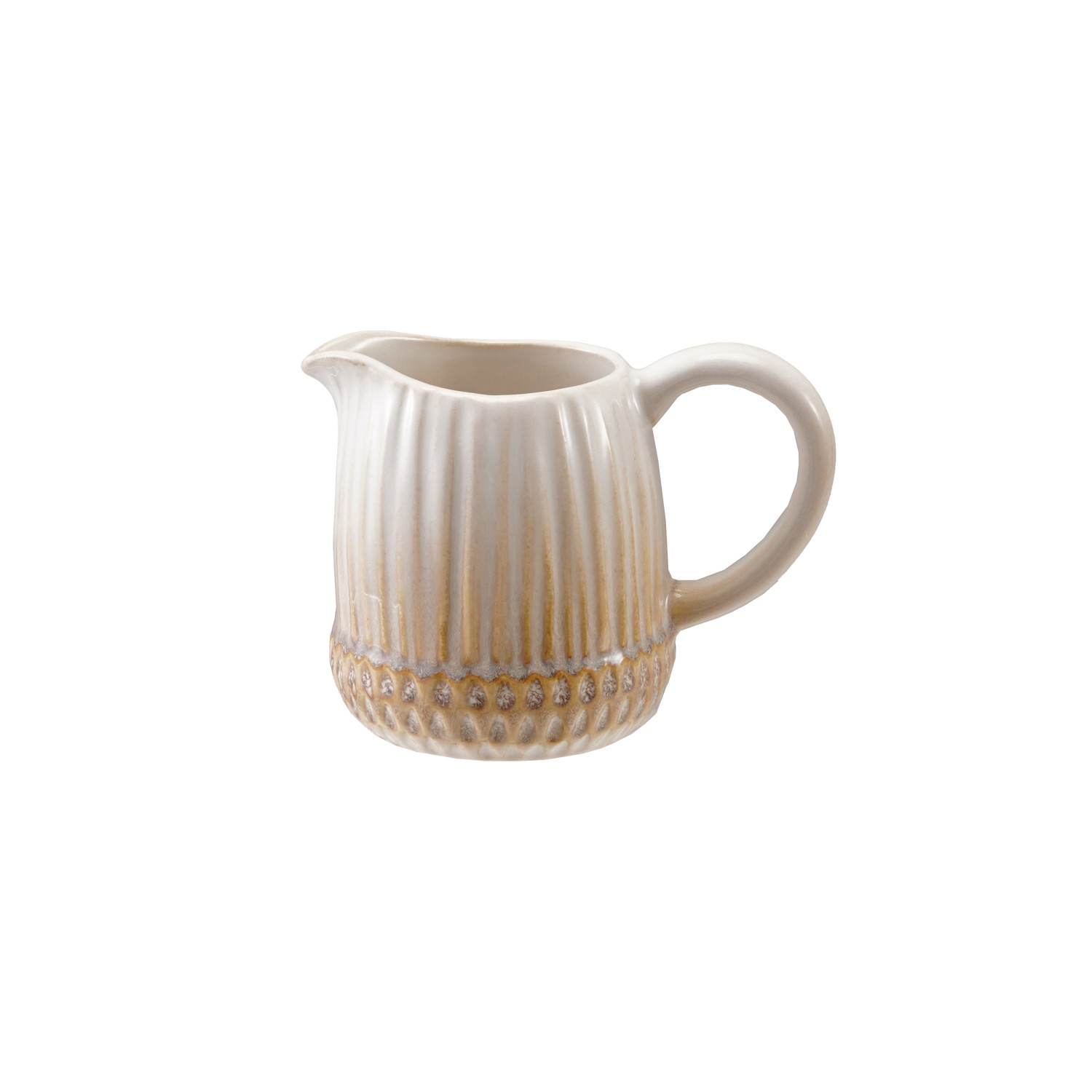 Catalog Name: 5"L x 3-1/4"W x 4"H 10 oz. Stoneware Acorn Shaped Creamer, Reactive Glaze, Cream Color (Each One Will Vary)