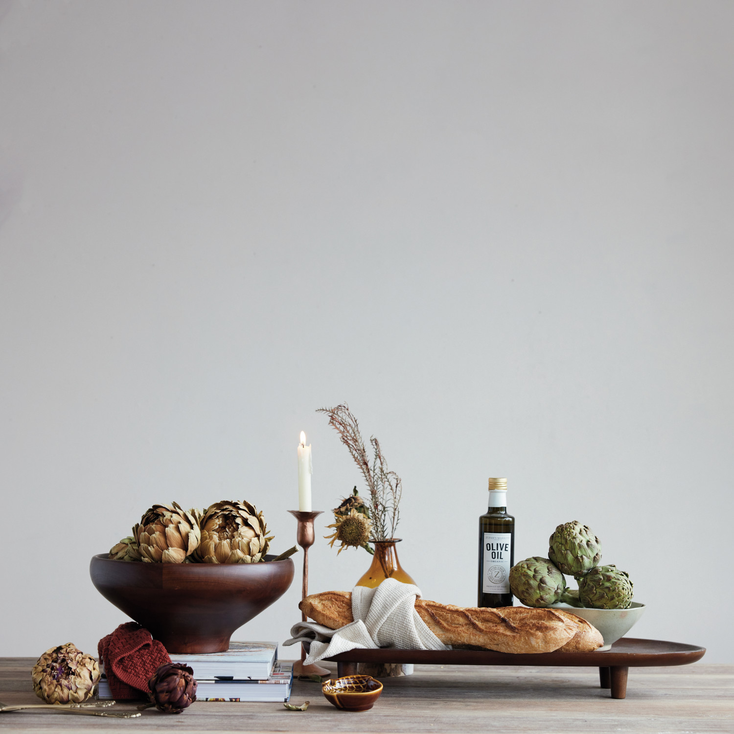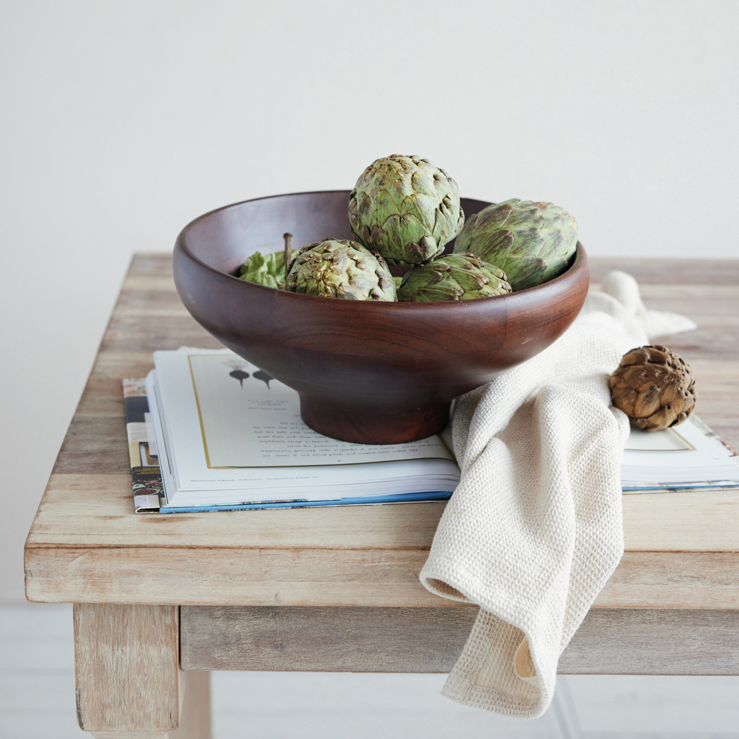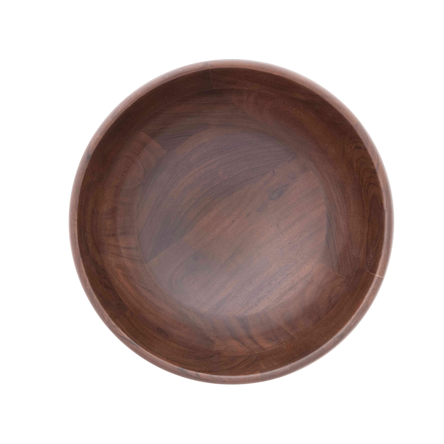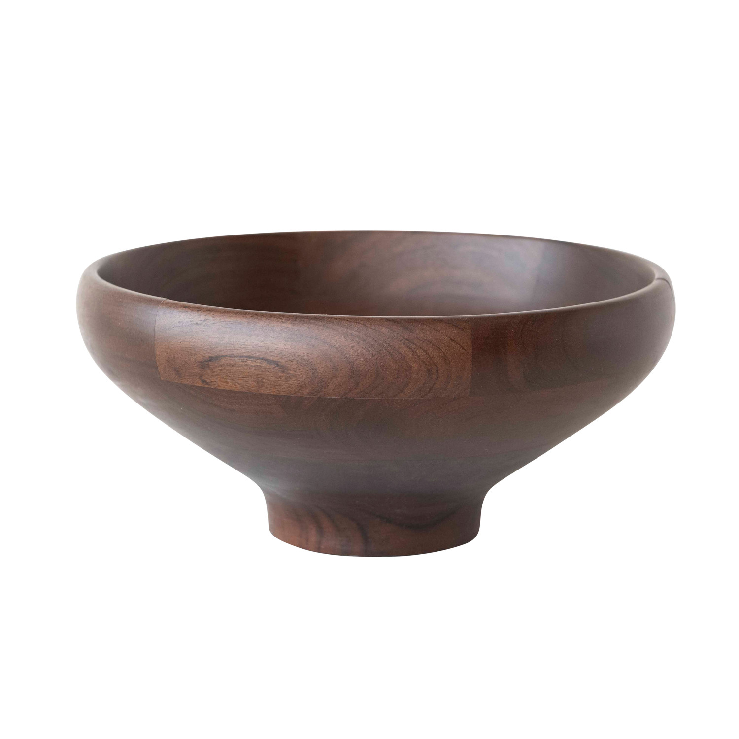 Catalog Name: 12-1/4" Round x 5-3/4"H Mango Wood Footed Bowl, Walnut Finish
