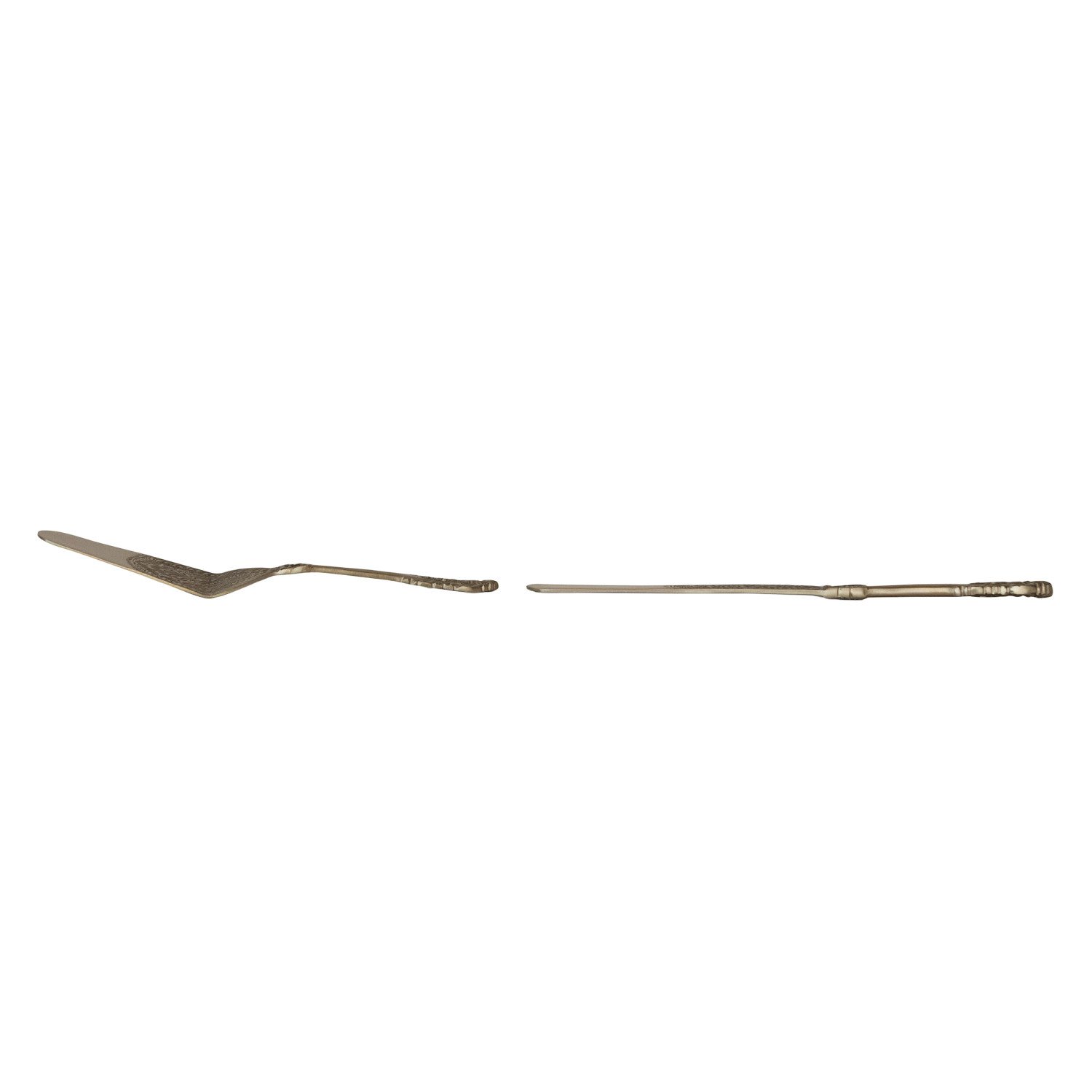 Catalog Name: 10"L - 11-1/4"L Embossed Brass Cake Servers, Set of 2 in Printed Drawstring Bag