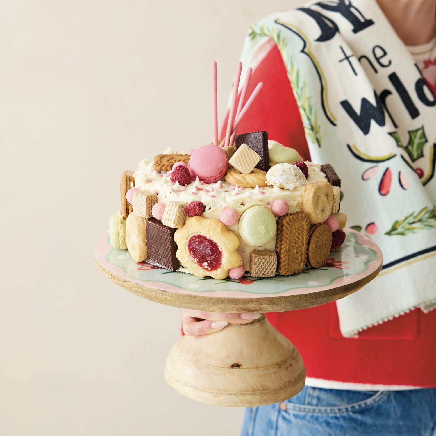 Enameled Mango Wood Pedestal with Holiday Botanicals ©