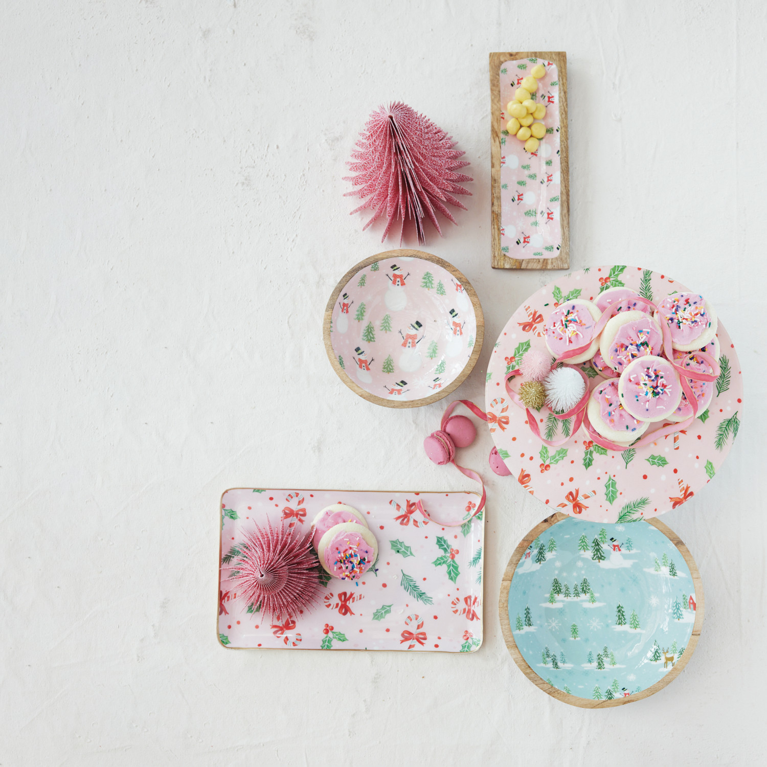 Catalog Name: 9-3/4" Round x 2-3/4"H & 8" Round x 2-1/2"H Enameled Mango Wood Bowls w/ Holiday Patterns, Multi Color & Natural, Set of 2 ©