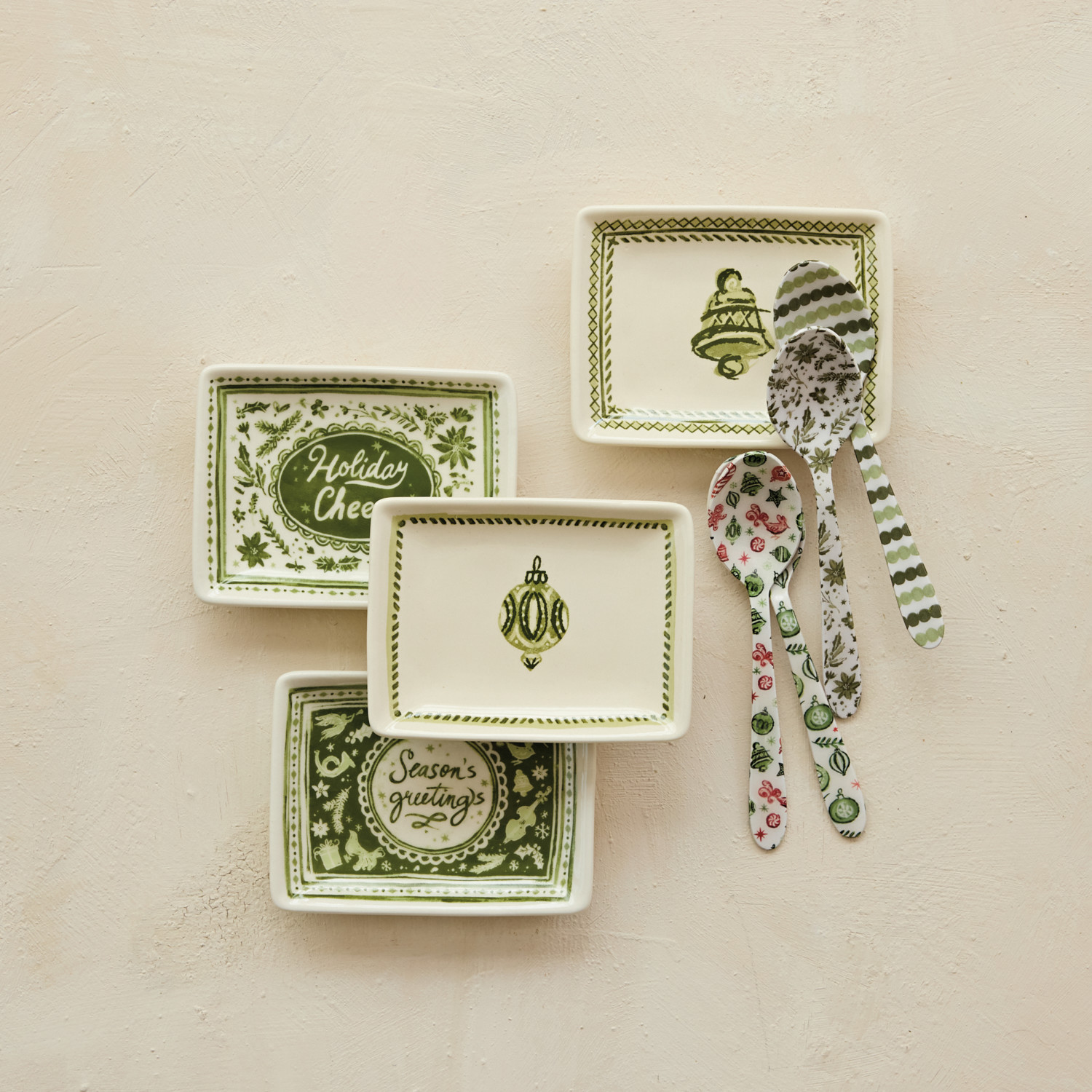 Stoneware Dish with Holiday Design/Saying, 4 Styles ©