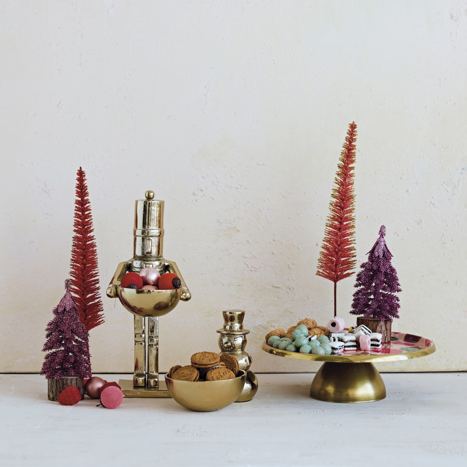 Cast Aluminum Snowman Holding Bowl, Gold Finish