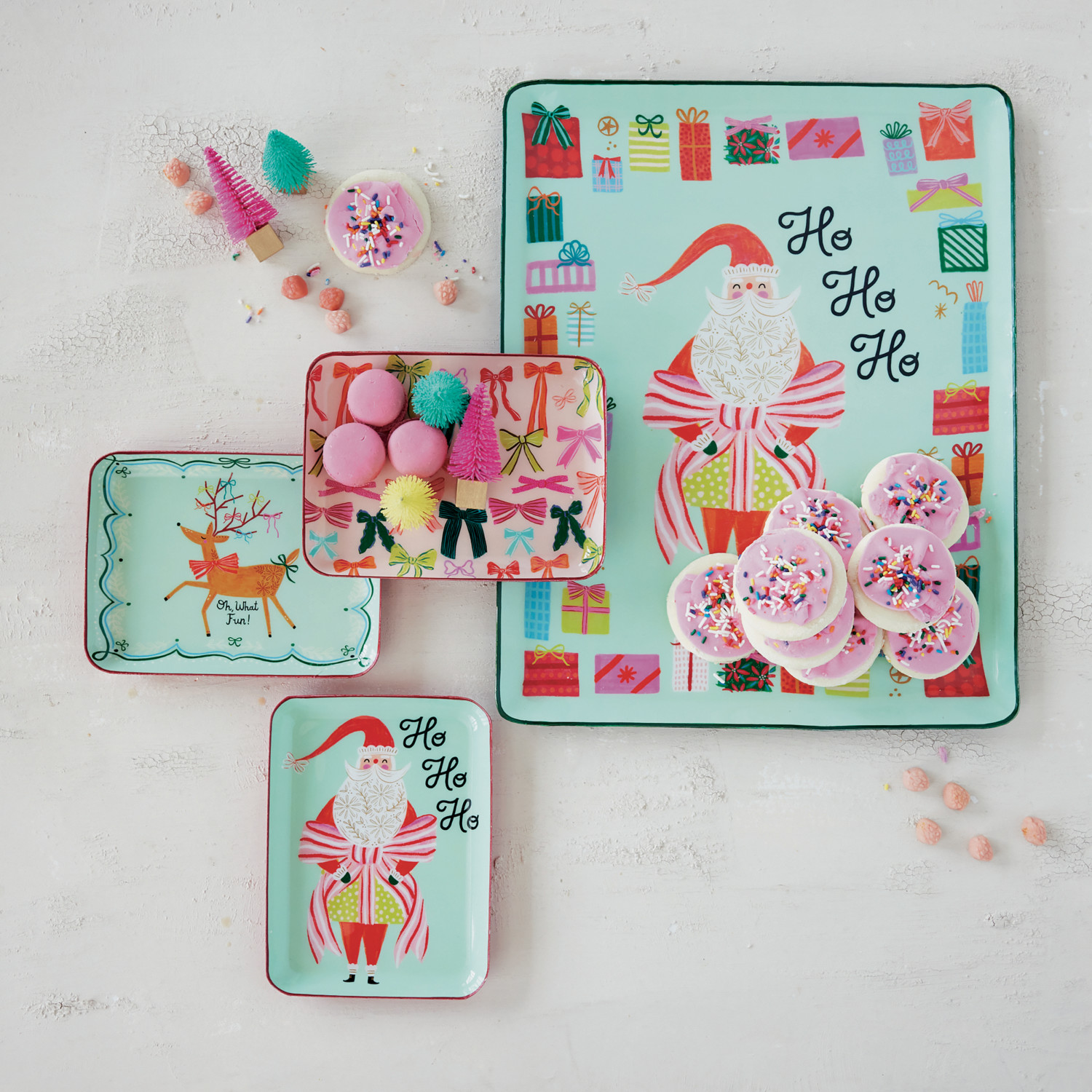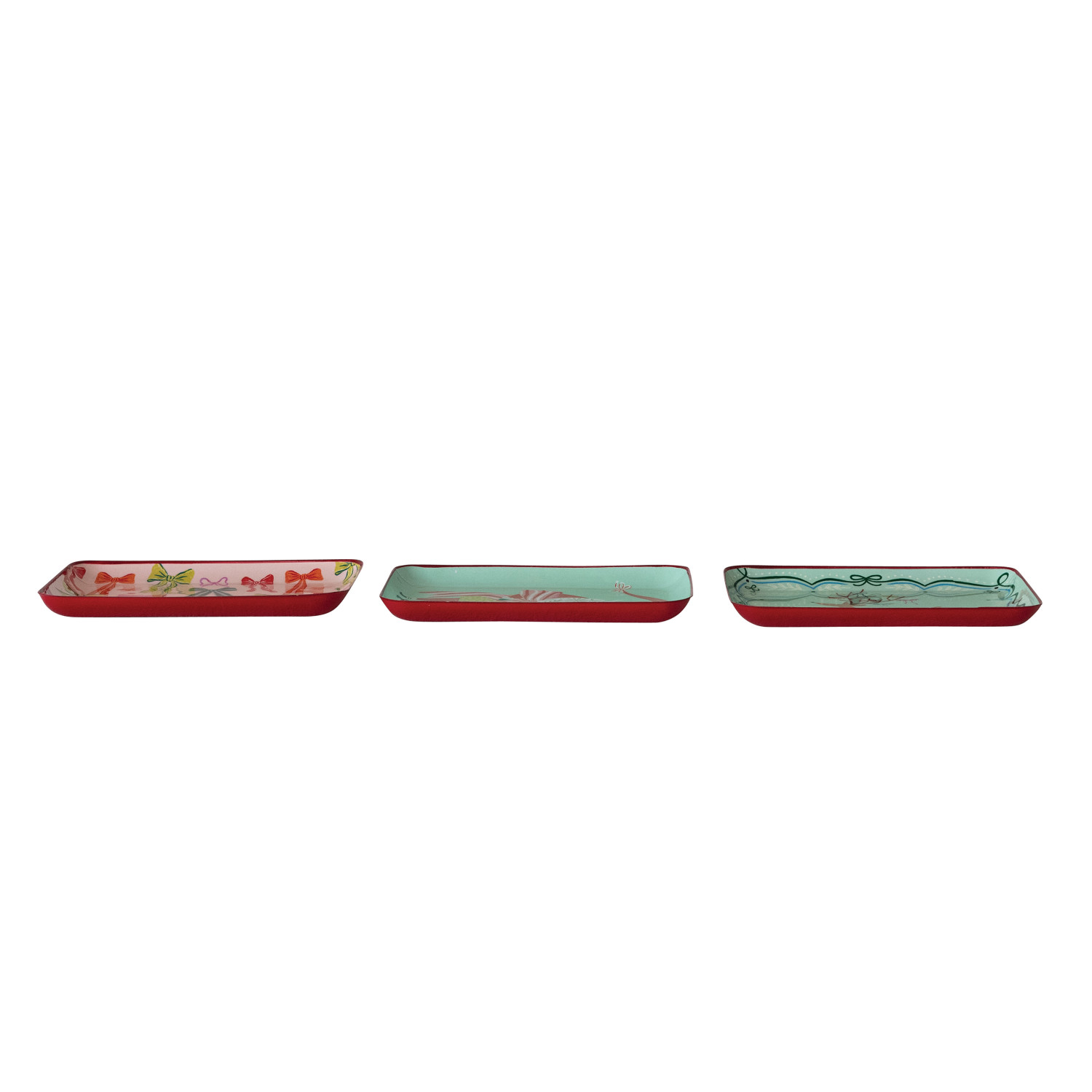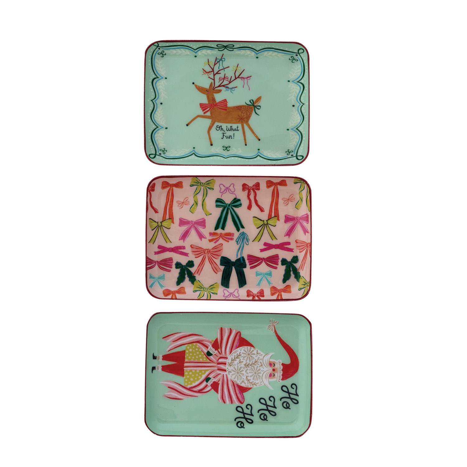 Catalog Name: 8"L x 6"W Enameled Metal Tray w/ Colored Edges, Holiday Image & Saying/Pattern, Multi Color, 3 Styles ©