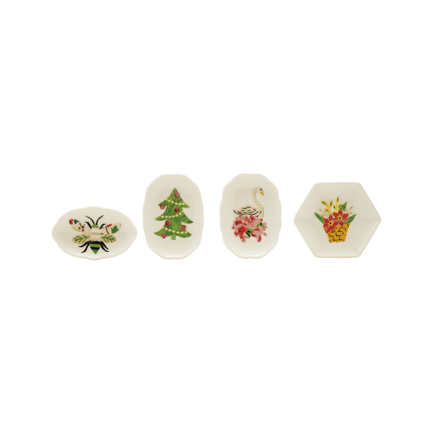 Catalog Name: Approximately 2"L Stoneware Dish w/ Holiday Icon, Multi Color, 4 Styles ©