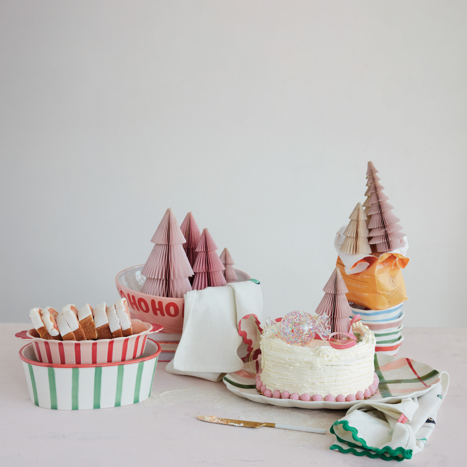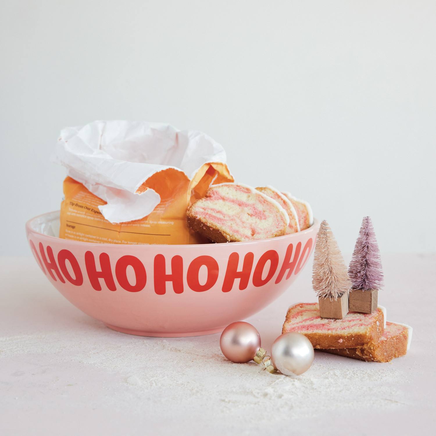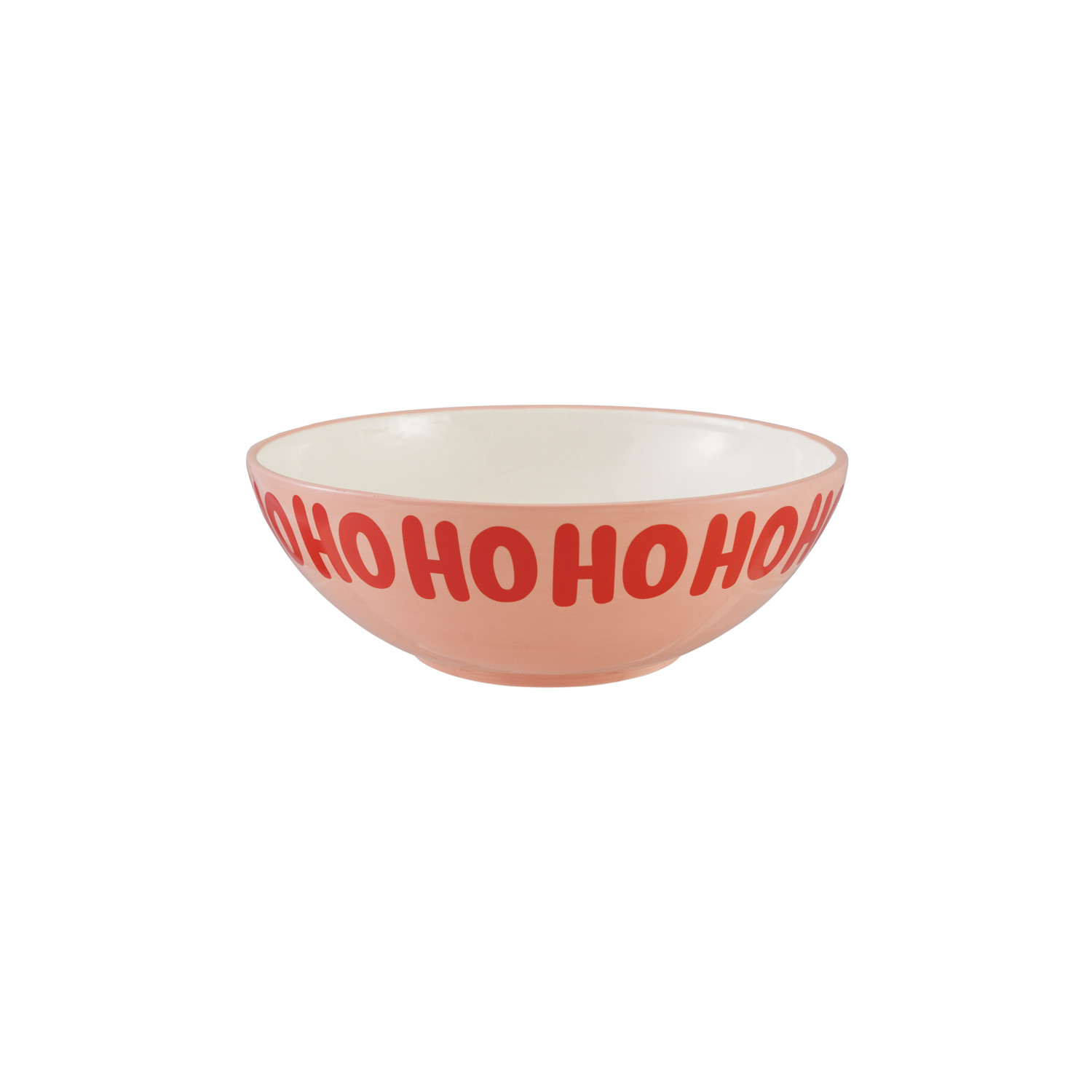 Ceramic Serving Bowl "Ho Ho Ho…", Pink, Red & White