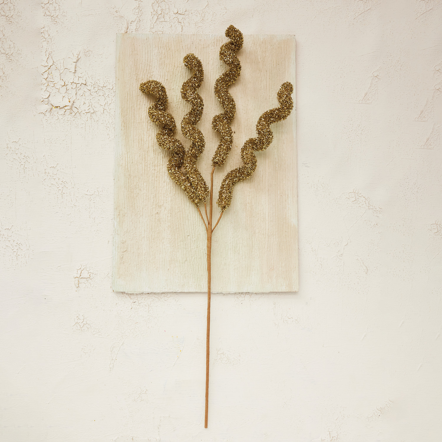 27"H Foam & Tinsel Curly Stem, Gold Finish
