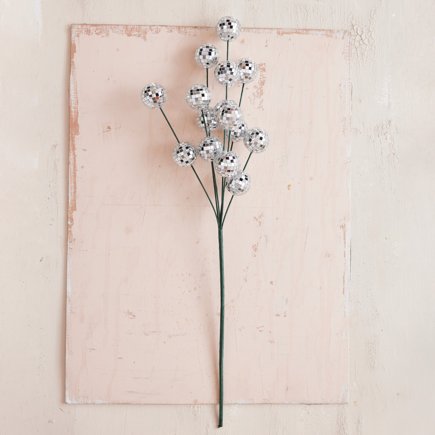 Catalog Name: 26"H Foam & Mirrored Glass Mosaic Ball Spray, Silver Finish