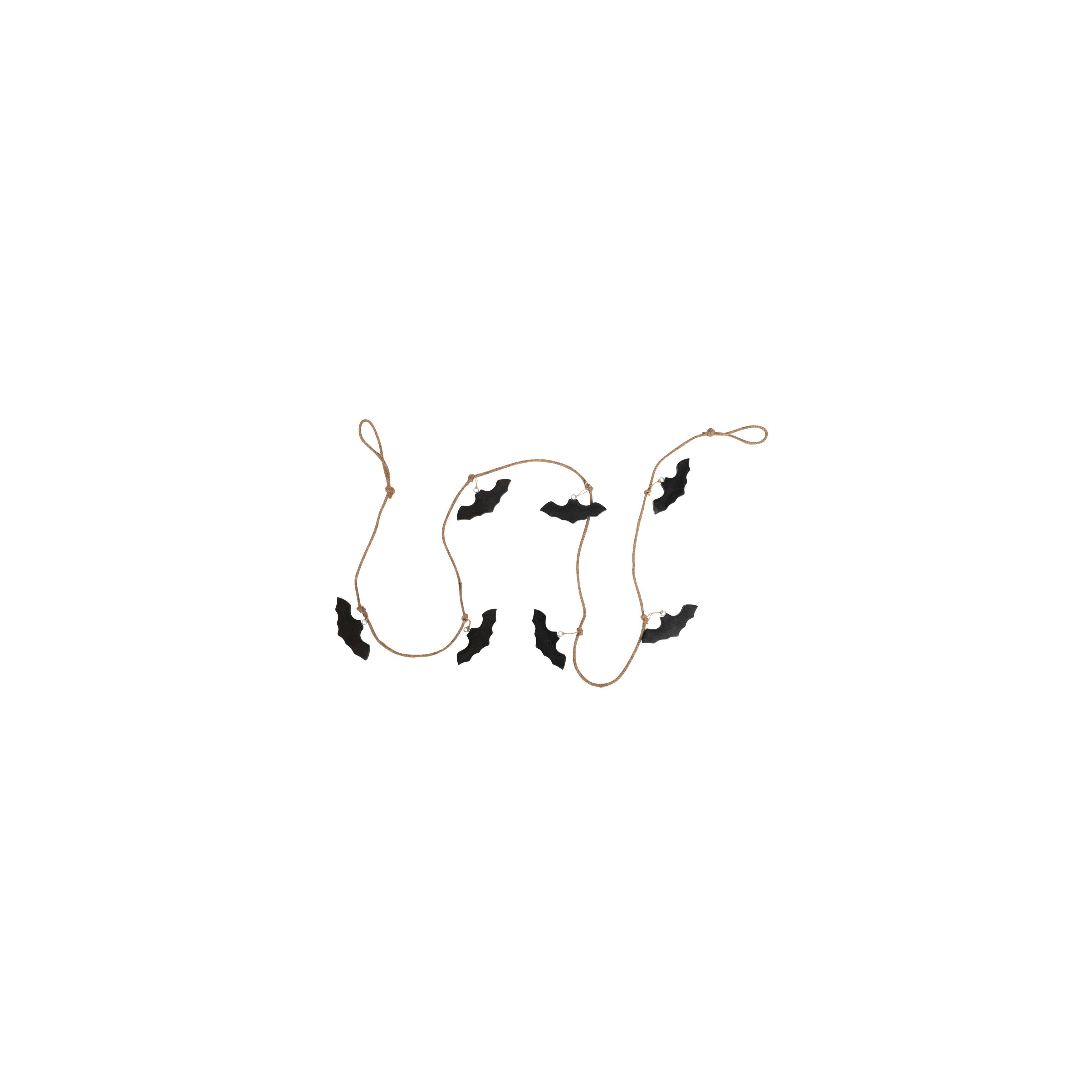 Catalog Name: 72"L x 4"H Mango Wood & Jute Rope Bats Garland, Black