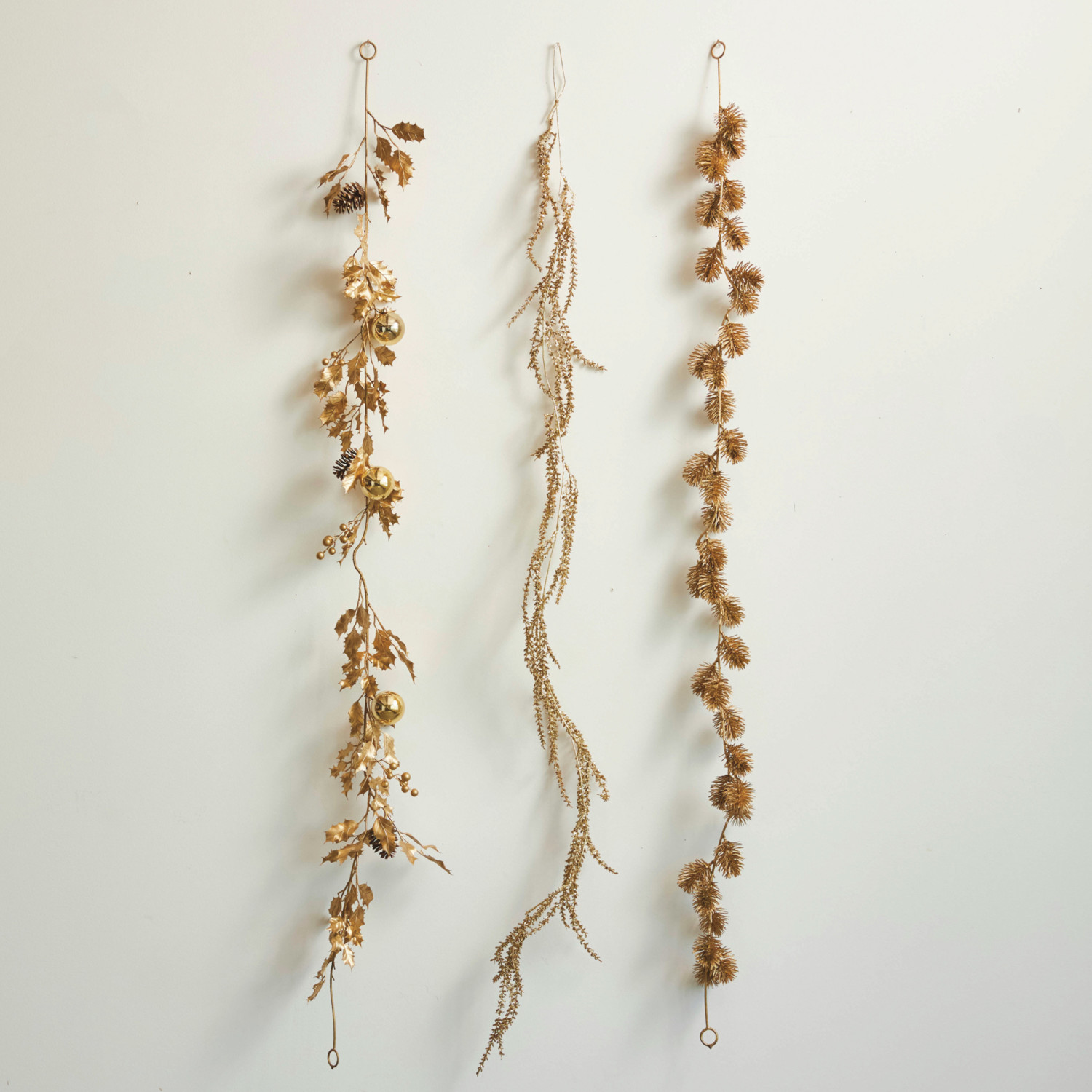 Catalog Name: 63"L x 3"H Faux Pine Garland, Gold Finish