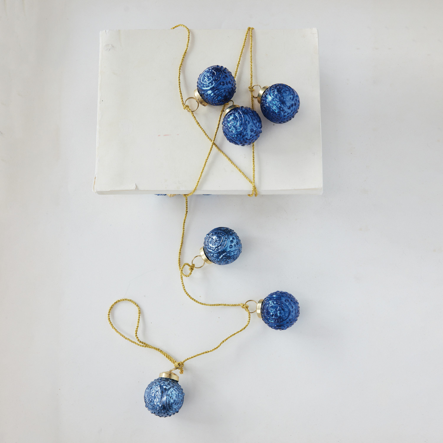 Embossed Mercury Glass Ornament Garland with Gold Cord, Blue
