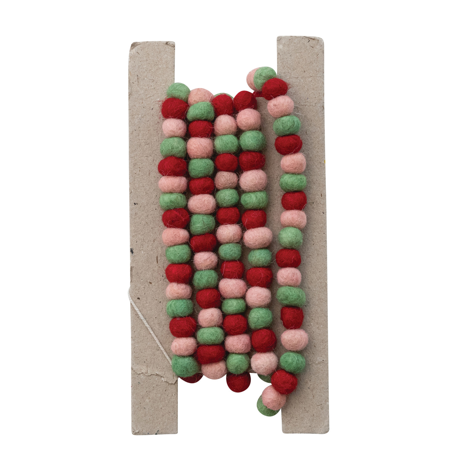 Catalog Name: 72"L x 1/2"H Handmade Wool Felt Ball Garland, Red, Green & Pink