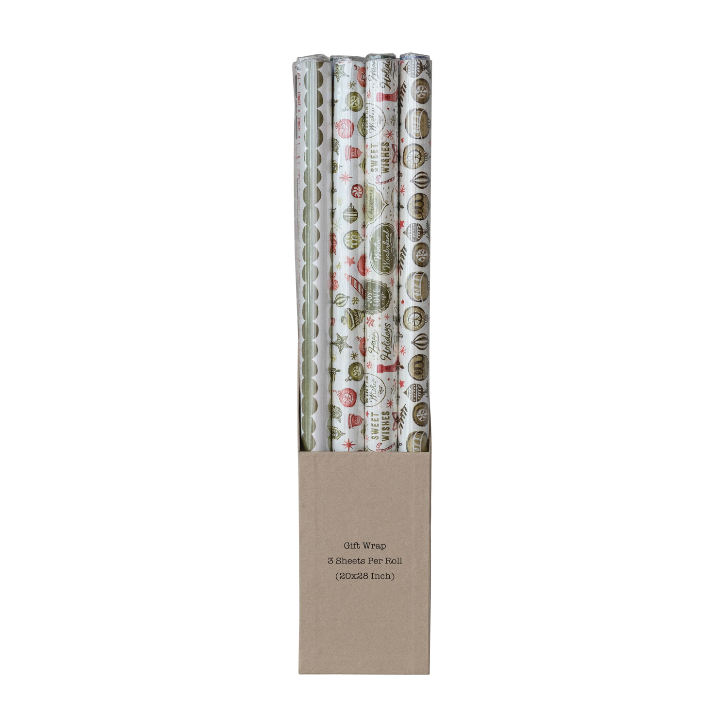 Wrapping Paper Sheets, Set of 12 in Box (4 Styles, 3 Rolls Per Style, 3 Sheets Per Roll) ©