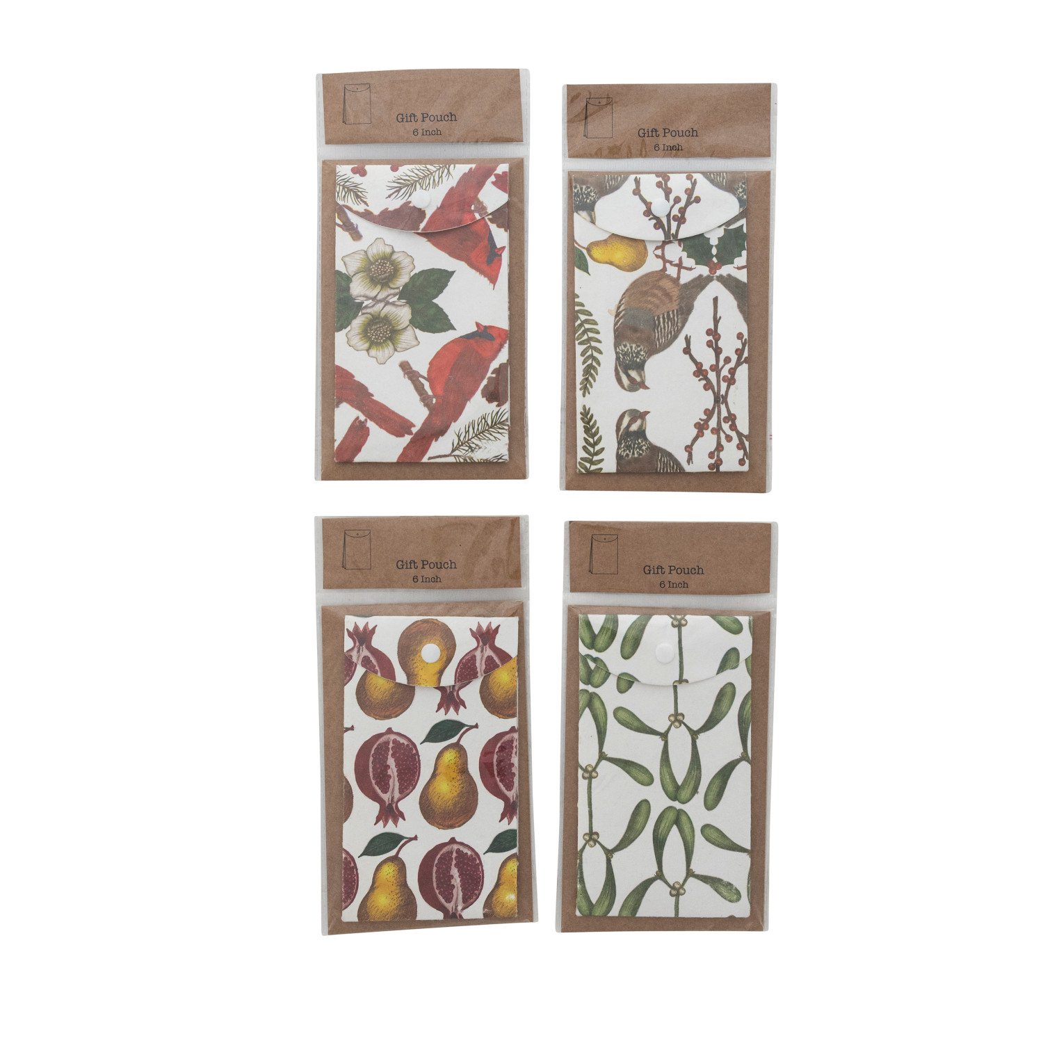 Catalog Name: 3-1/2"L x 1-1/4"W x 6"H Handmade Printed Recycled Paper Gift Bag w/ Seasonal Botanicals/Animals Pattern & Snap Closure, Multi Color, 4 Styles ©