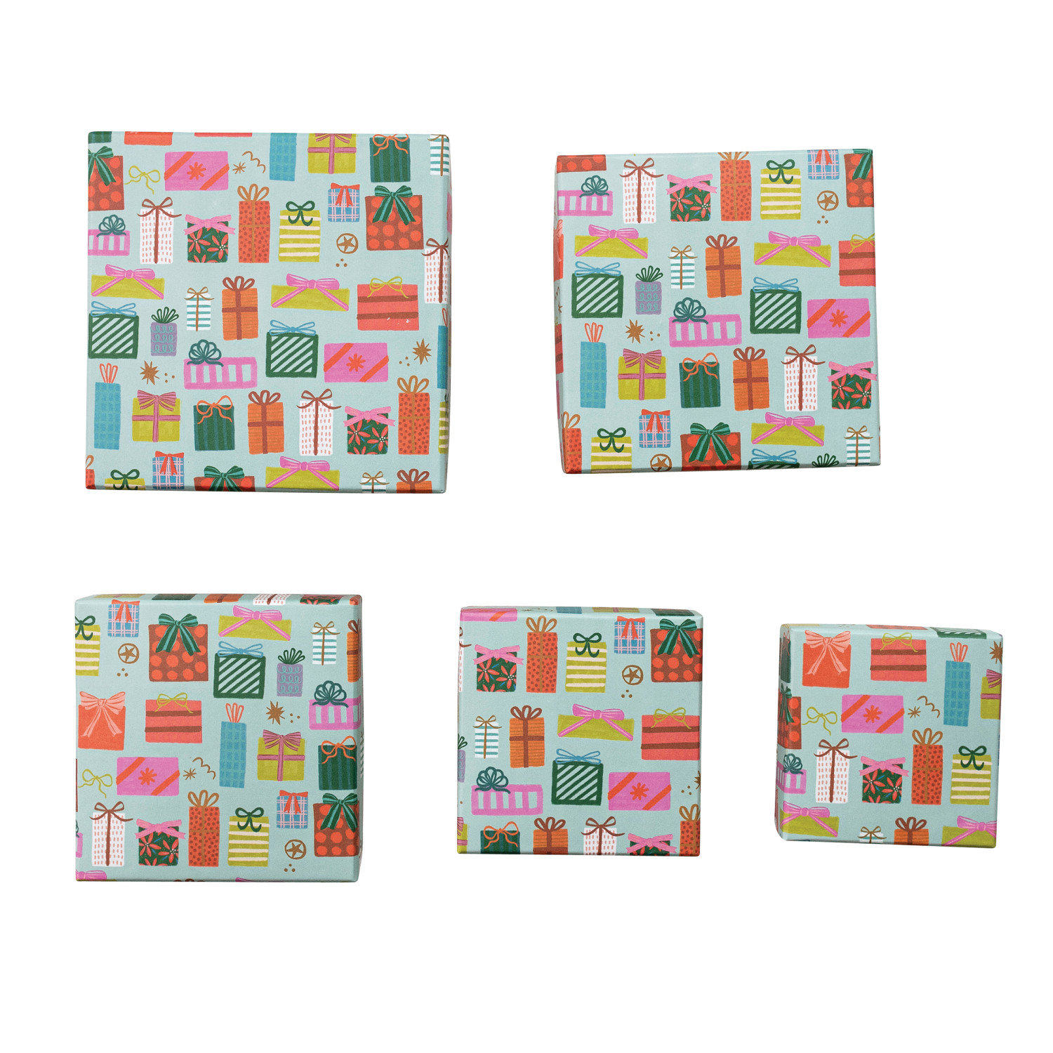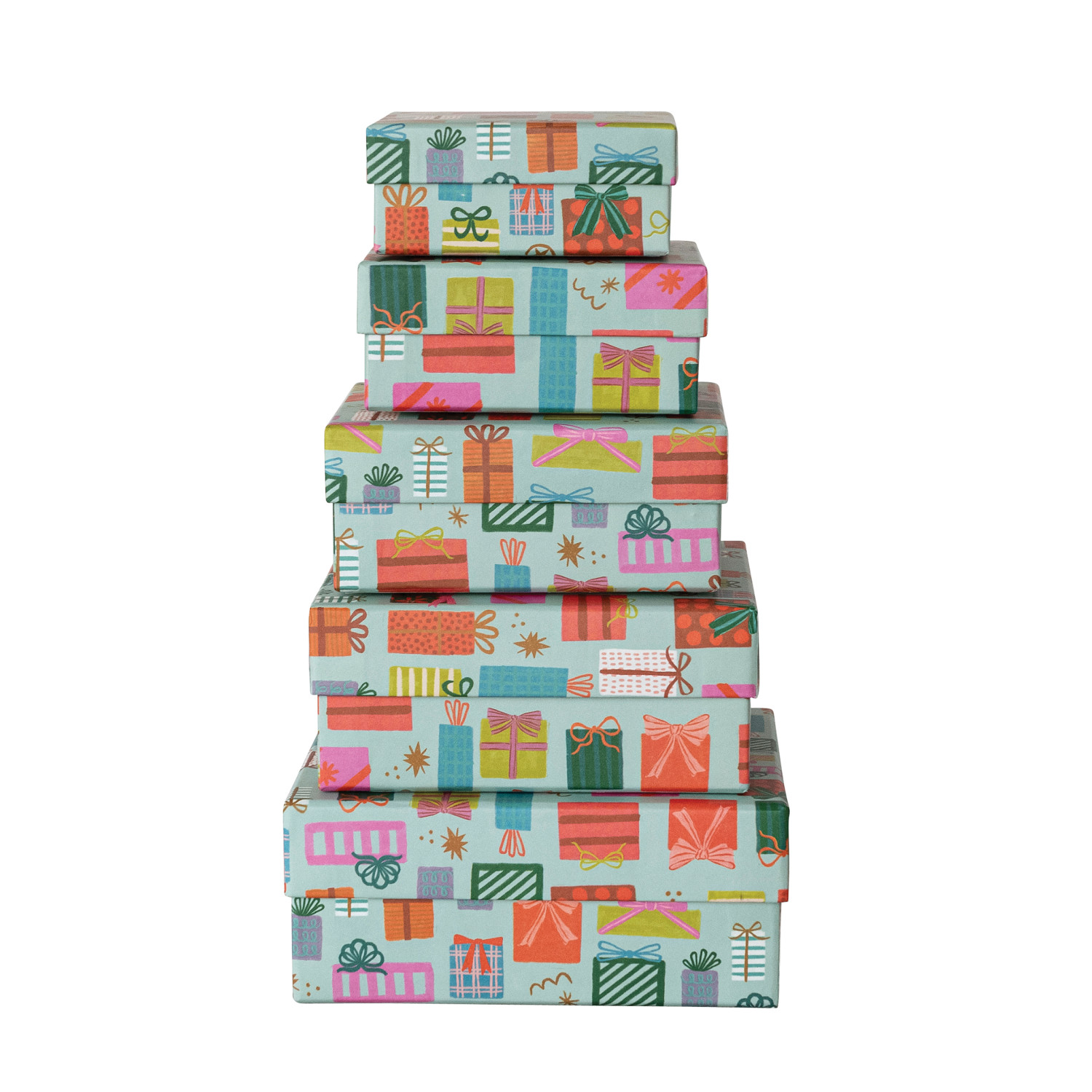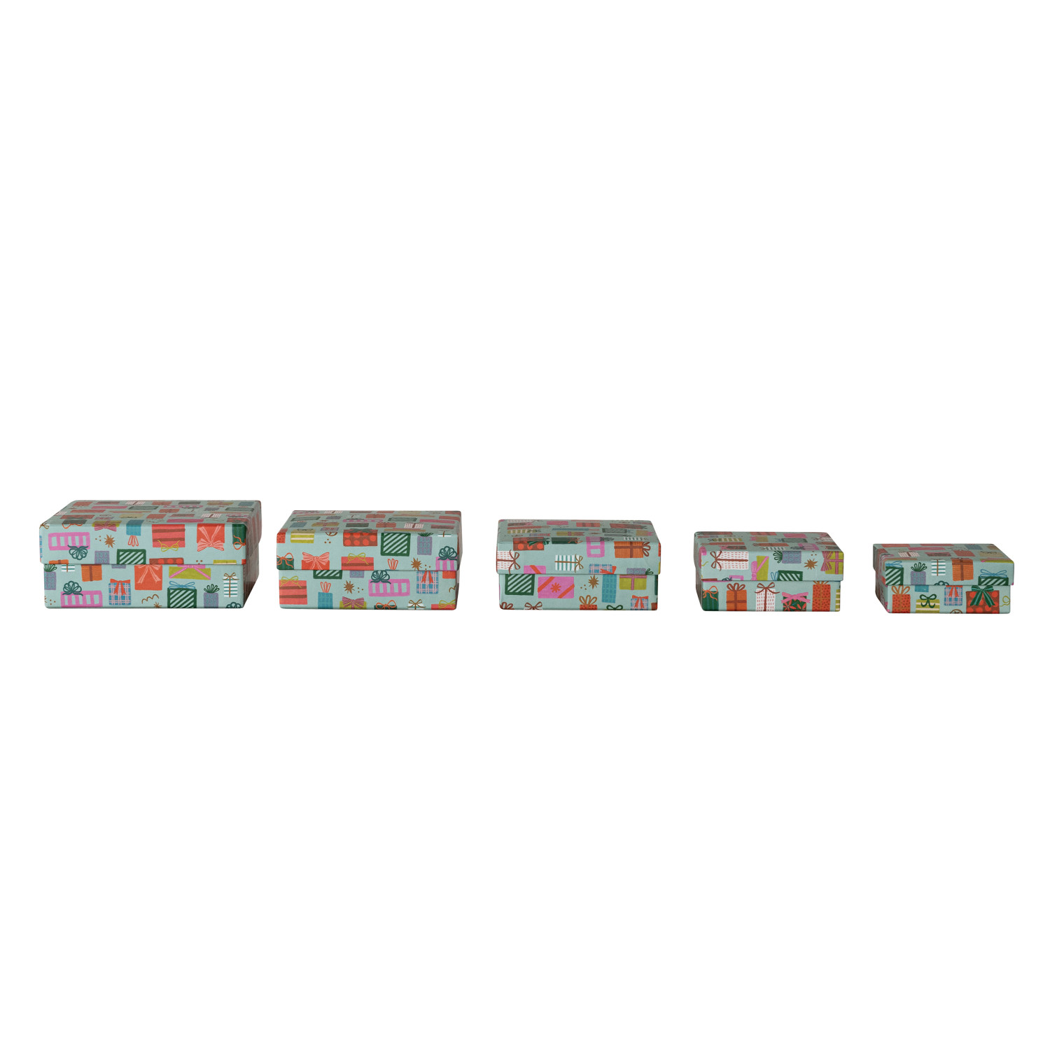 Handmade Printed Recycled Paper Gift Boxes with Gift Box Pattern, Set of 5 ©